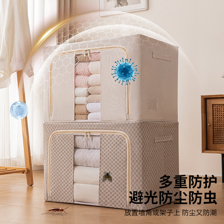 Steel frame cotton and linen storage box Large capacity fabric foldable Baina box Home clothi...