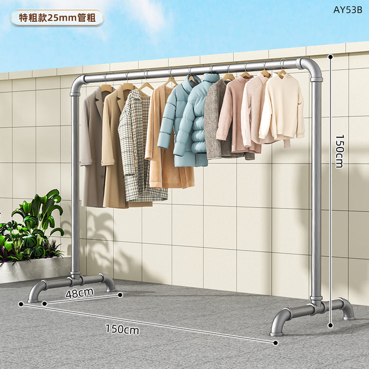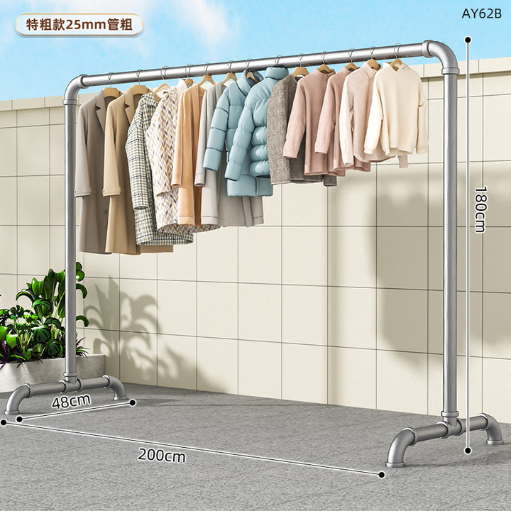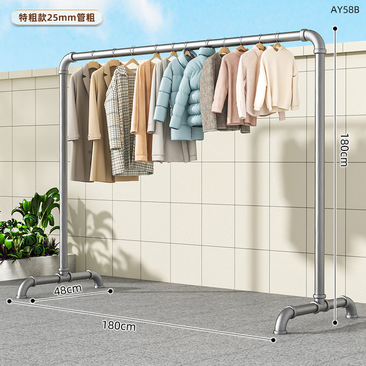 Steel pipe drying rack hanging hanger single pole extra thick bedroom floor to ceiling vertical sun outdoor drying clothes quilt stainless galvanized