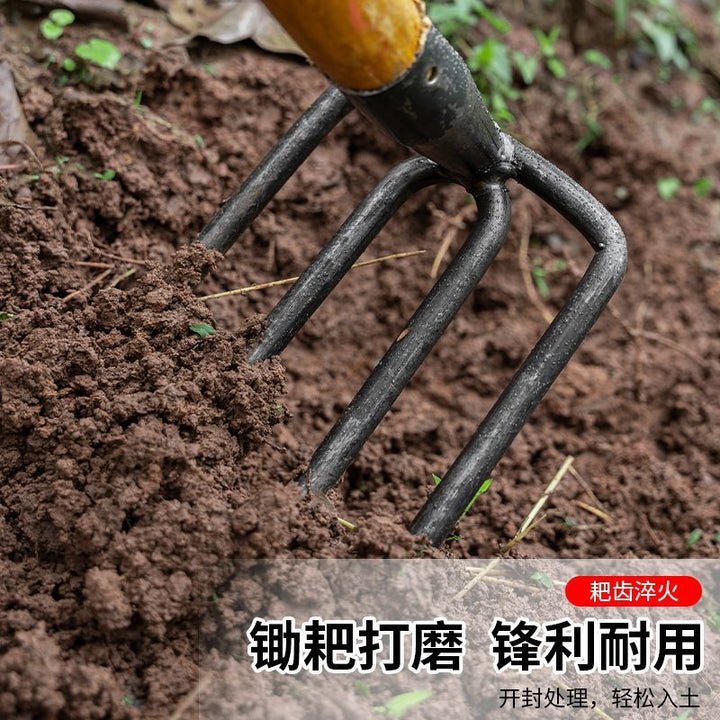 Steel rake Multi-toothed rake Two-toothed three-toothed four-toothed rake Catch the sea and turn the ground to plan sweet potatoes and peanuts Weed...