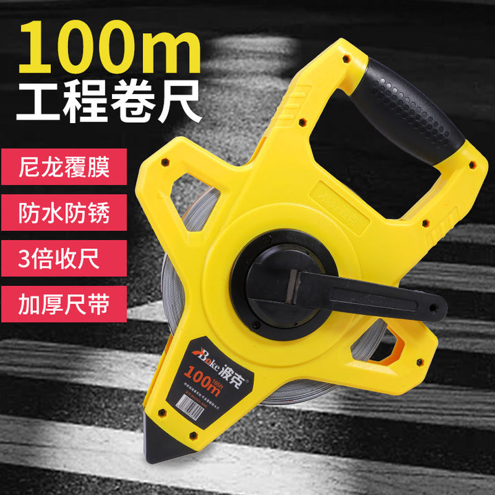 Steel tape measure 50m 100m waterproof and wear-resistant thickened and hard long tape measure large measuring tool anti-cutting hand anti-rust