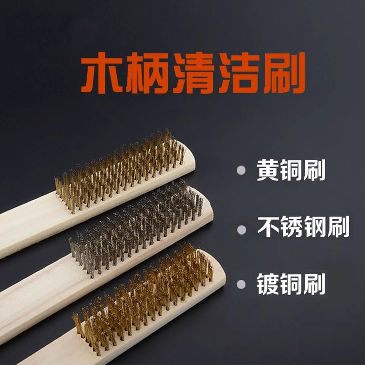 Steel wire brush Long handle Copper wire brush Wooden handle Steel brush Derusting with handle Wenwan brush Iron brush BBQ brush Cleaning brush
