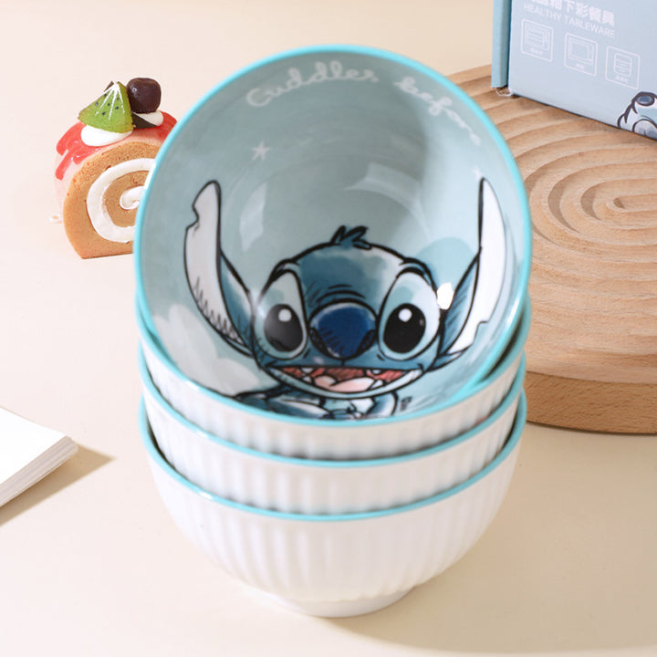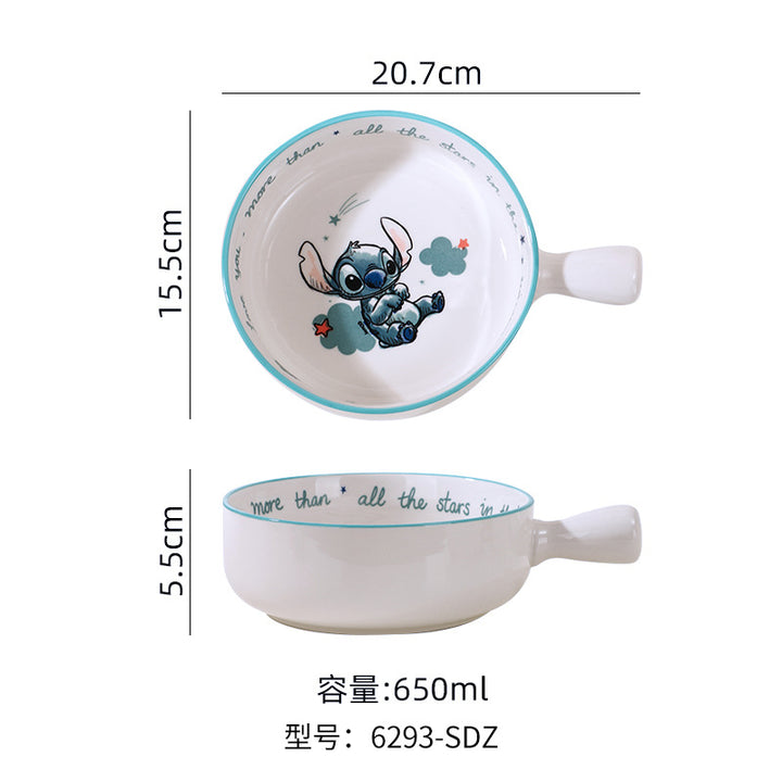 Stitch ceramic bowl high value handle bowl children adult universal tableware cartoon rice bo...