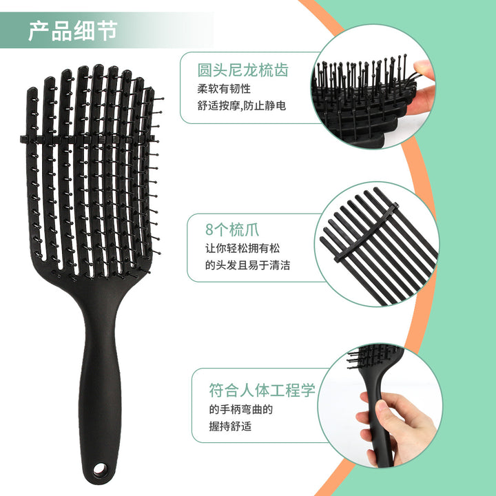 Straight curved comb Hollow scalp massage comb Fluffy smooth hair Hair styling Octopus ribs comb High cranial top comb