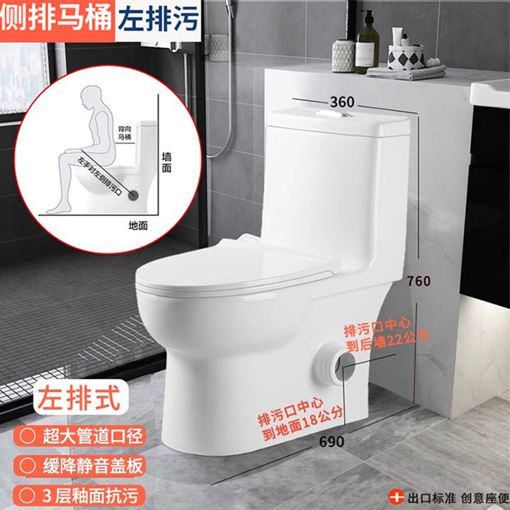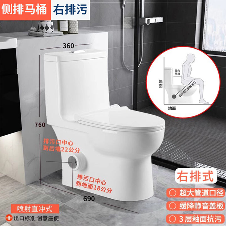 Straight flush side row left and right row household toilet large diameter anti-blocking and deodorant horizontal row wall rear row straight row to...
