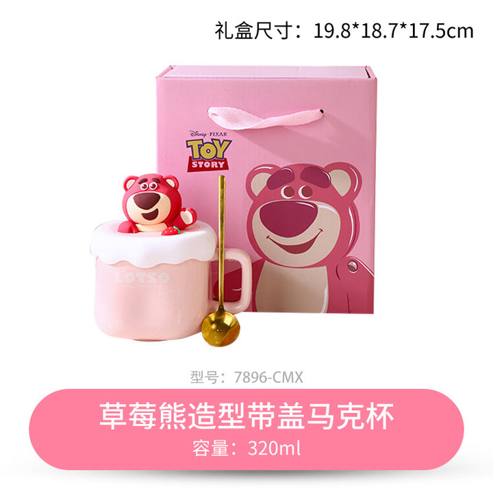Strawberry Bear Shaped Lid Mug, Winnie the Pooh Lid Mug |
