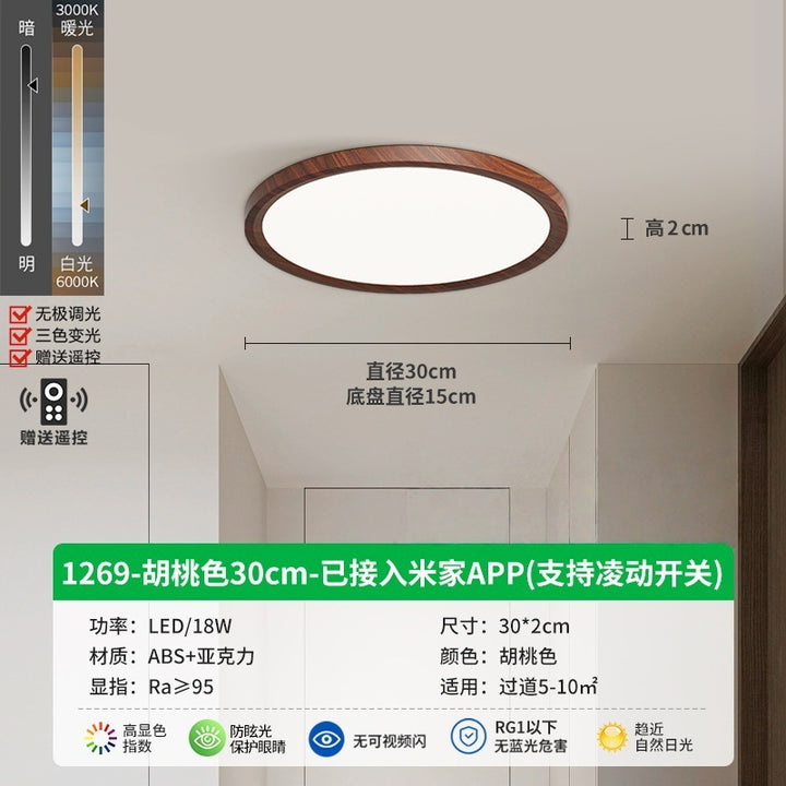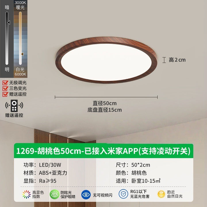 [Strict Selection] Bedroom Ceiling Light Modern Simple Ultra-thin Walnut Restaurant Light Full Spectrum Eye Protection Children's Room Light