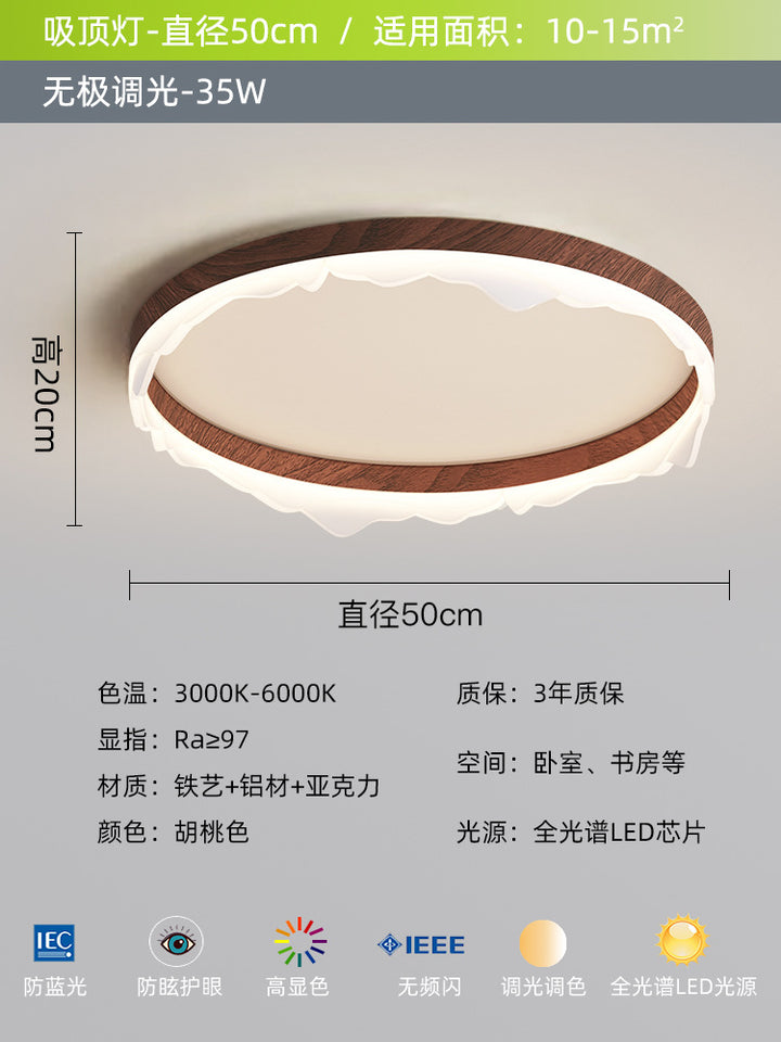 [Strict selection] Ceiling lamp modern simple eye protection walnut color retro creative iceberg study room lamp