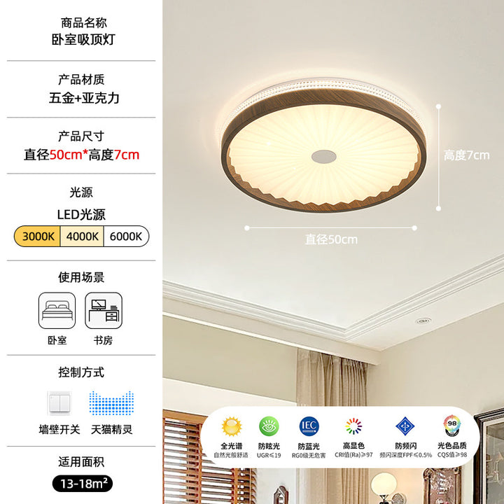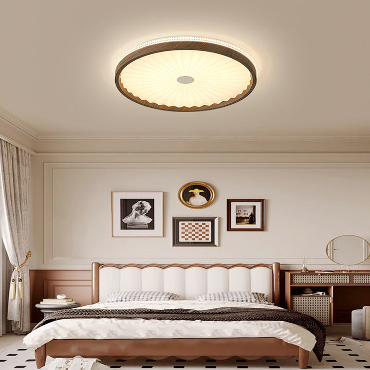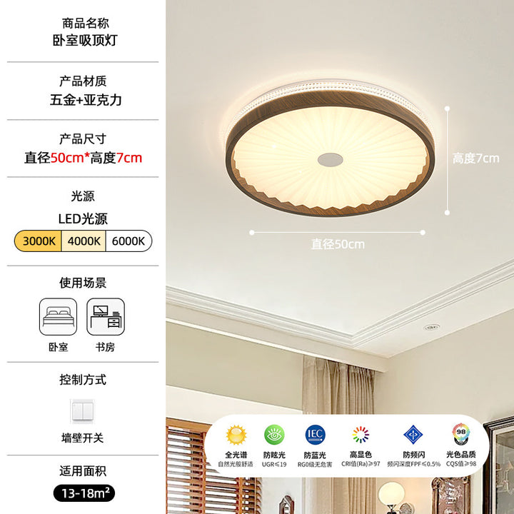 [Strict Selection] Ceiling Light LED Eye Protection Round Pleated Restaurant Light Medieval Wabi Sansan Wind Walnut Tea Room Light