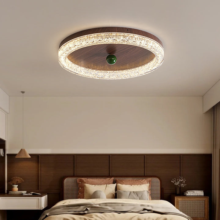 [Strict Selection] Medieval Cream Wind Bedroom Ceiling Light Walnut Color Advanced Sense Roun...