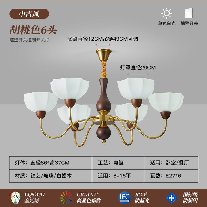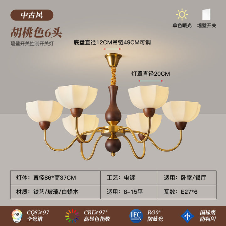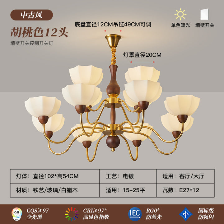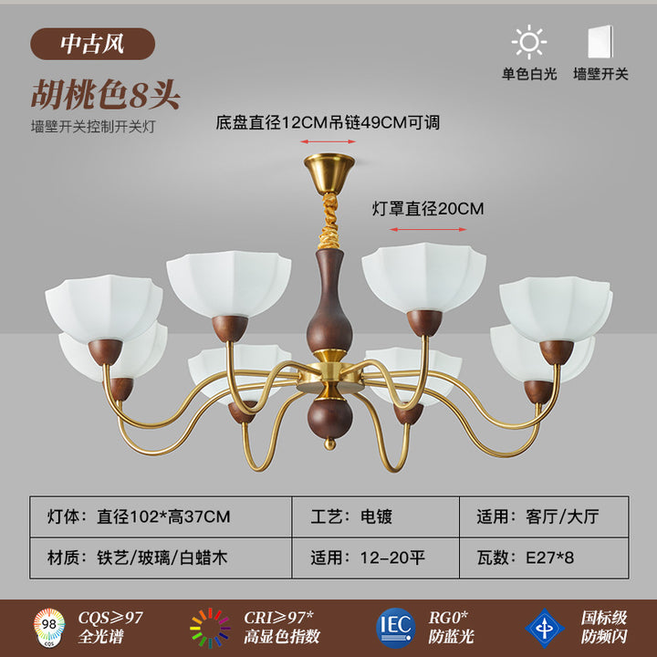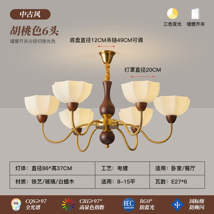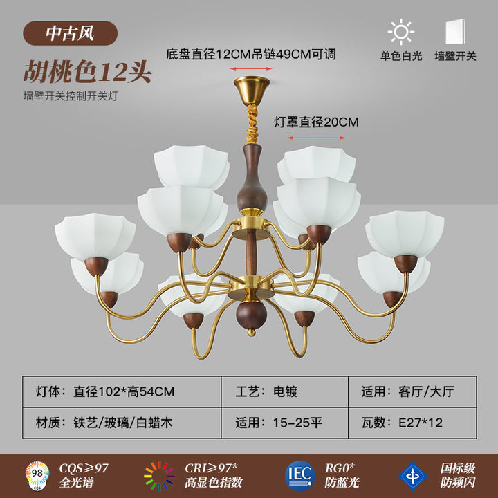 [Strict Selection] Medieval Style Chandelier New Chinese Retro Walnut Hall Main Light High-end Nanyang Style Book Room Light