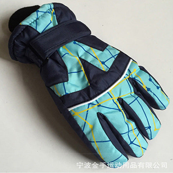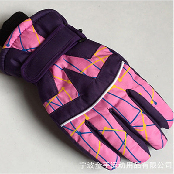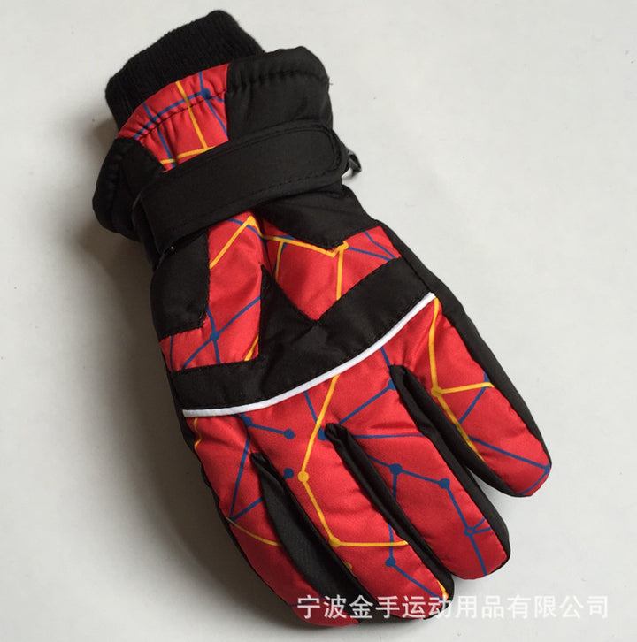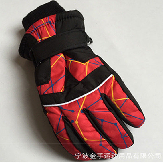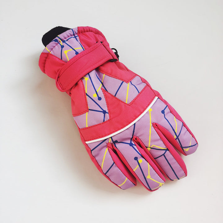 Strictly selected winter children's fashion printed gloves outdoor sports waterproof and cold...