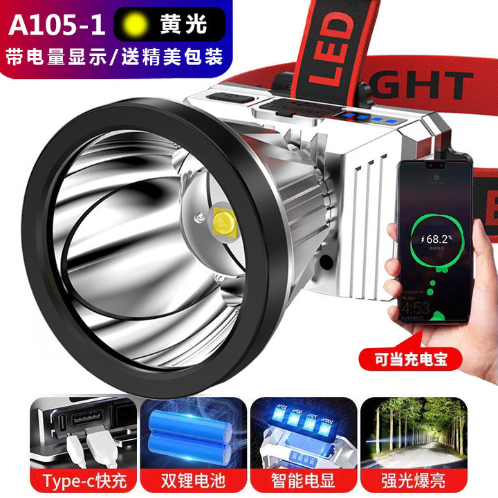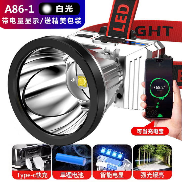 Strong light induction headlight charging waterproof outdoor headlight long battery life head-mounted lithium battery LED miner light night fishing...