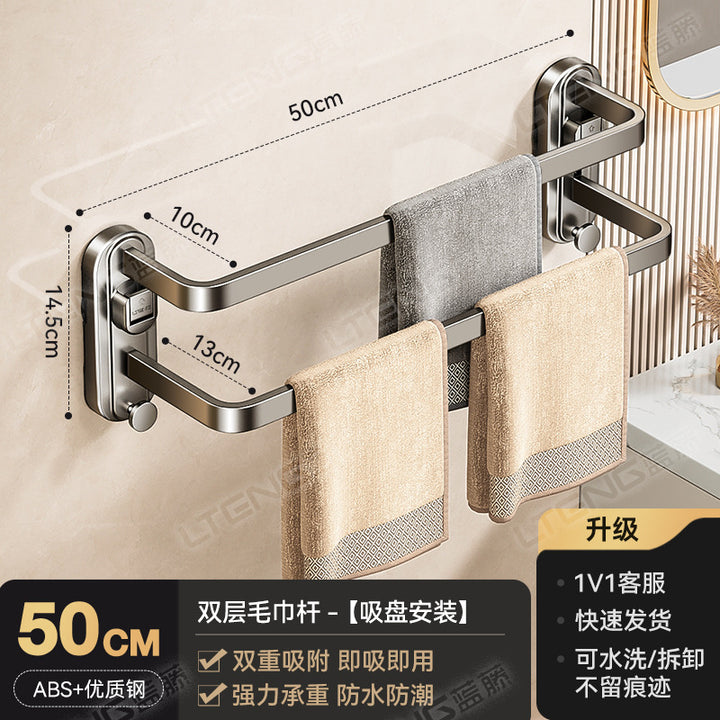 Strong suction cup type towel bar rack No punching toilet Bathroom wall hanging single and do...