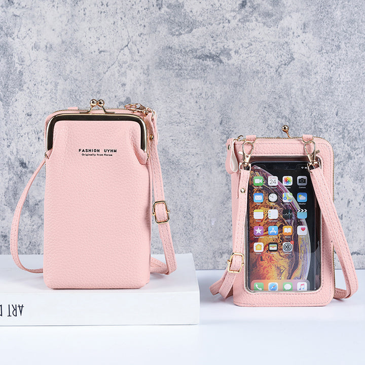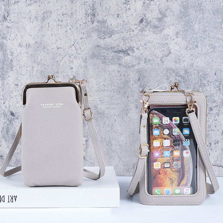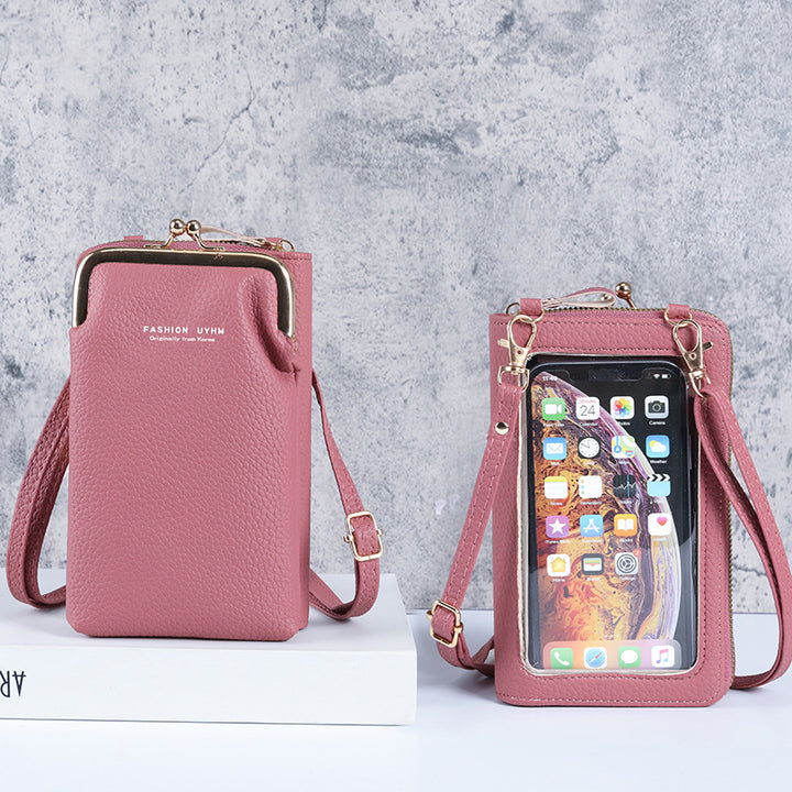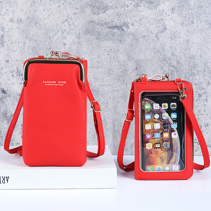 Student change bag PU leather bag integrated women's wallet zipper new touch screen Korean version mini mobile phone bag wholesale