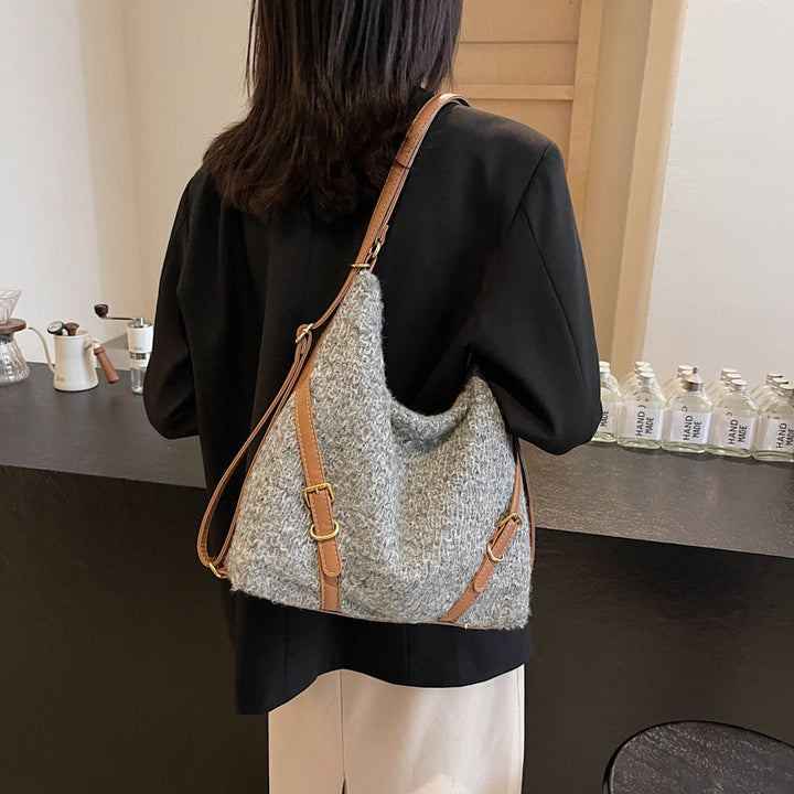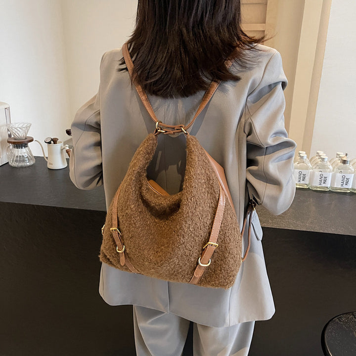 Student class leather velvet bag women's 2025 autumn and winter new large-capacity tote bag shoulder bag backpack