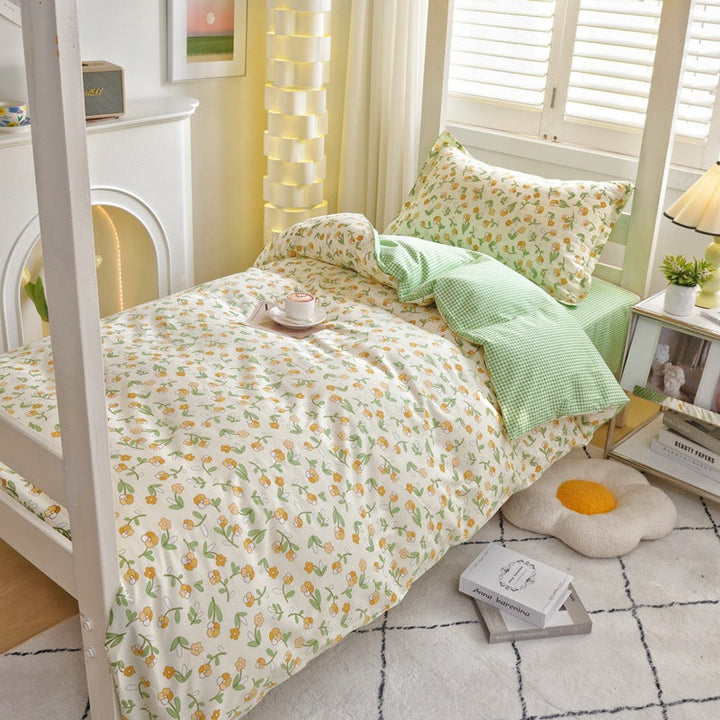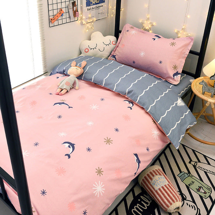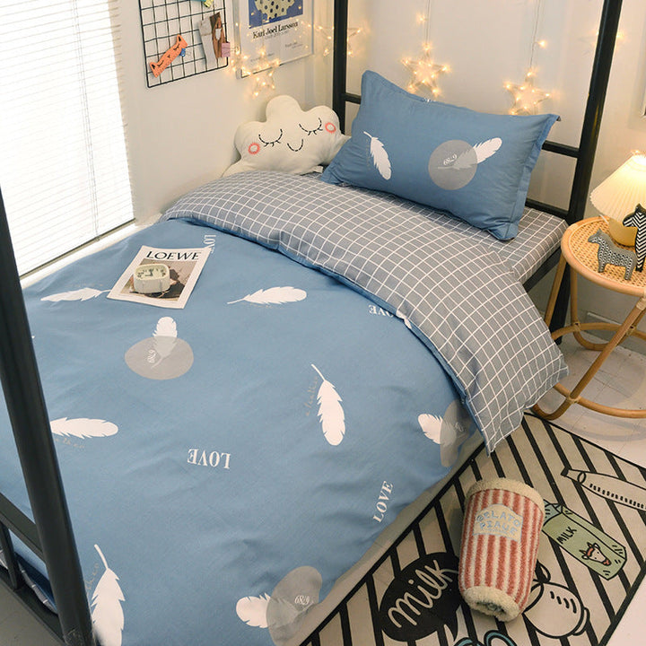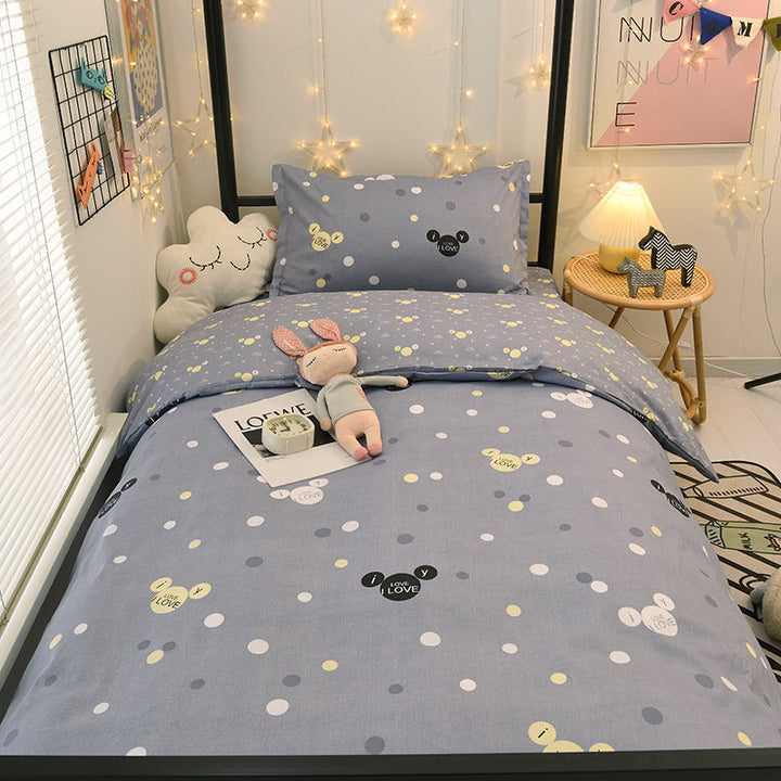 Student dormitory quilt cover three-piece bed sheet pure cotton single bed children's bed qui...