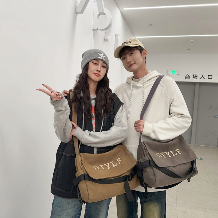 Student messenger bag men's high-end niche canvas bag large capacity women's fashion new shoulder bag backpack