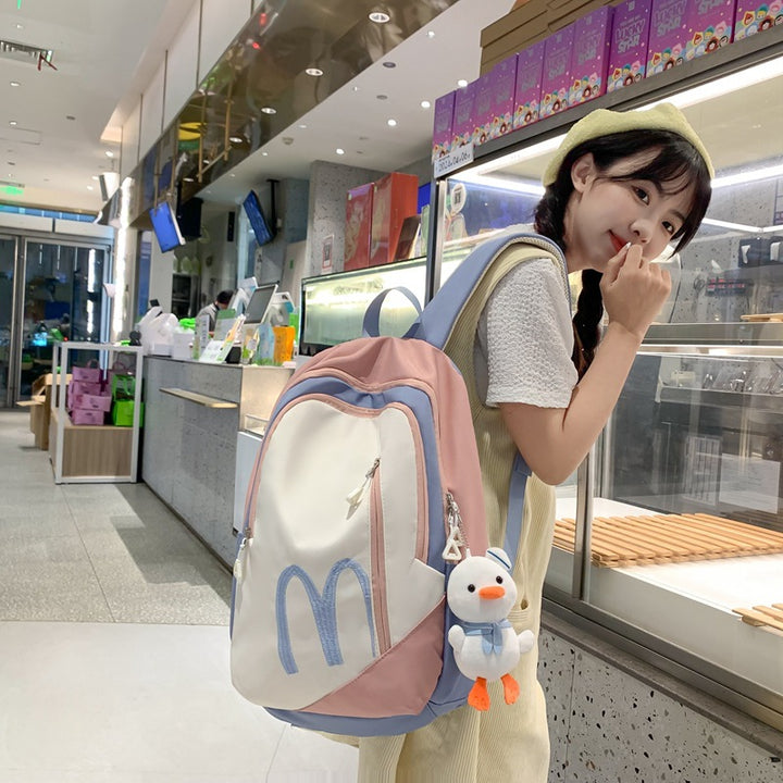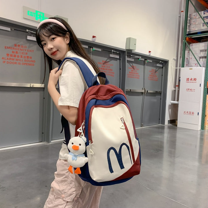 Student schoolbag High value junior high school student fashion backpack Korean version trend large capacity backpack Contrasting color schoolbag