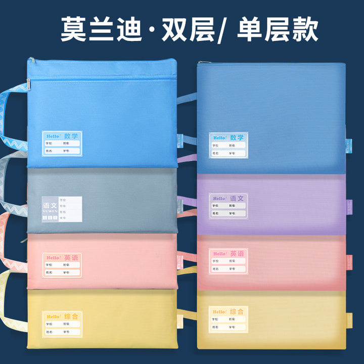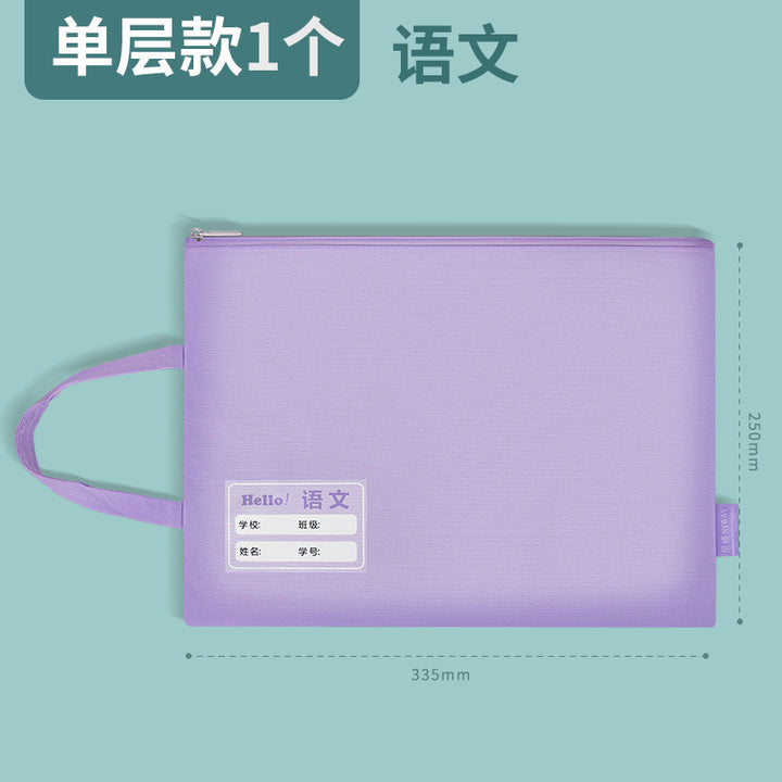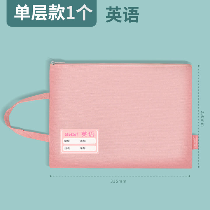 Student subject classification Handheld book bag Single-layer double-layer tutoring bag Homework zipper bag Make-up bag Test paper storage