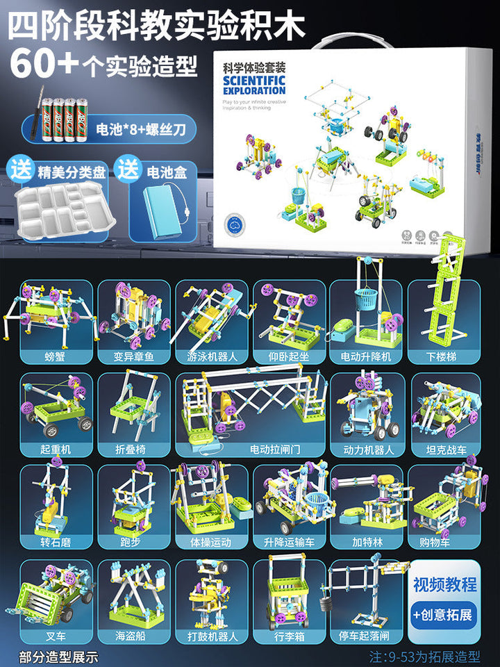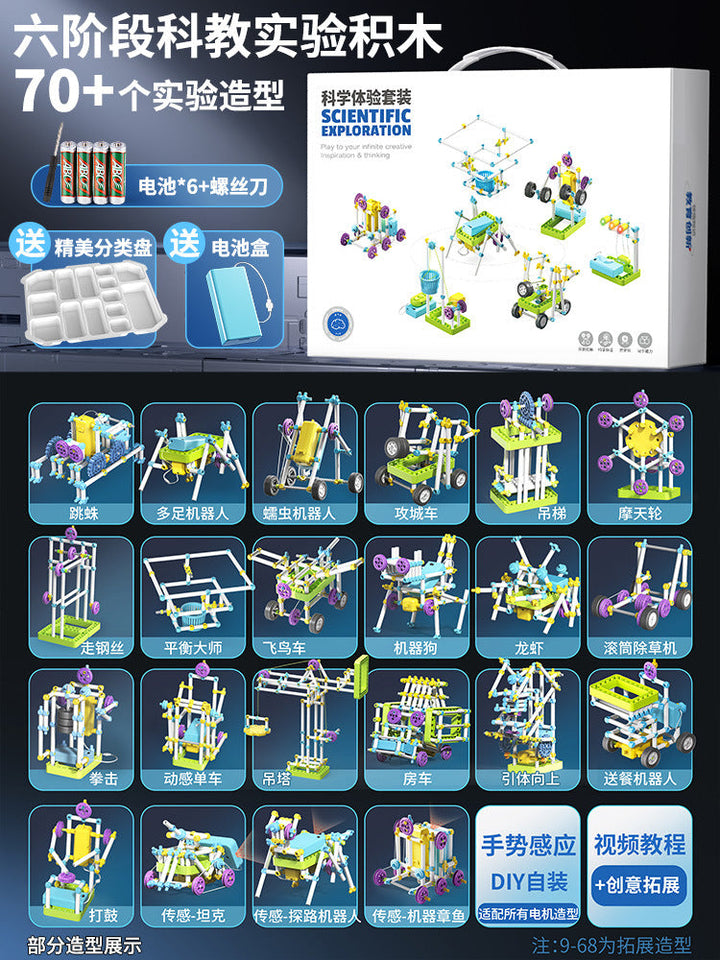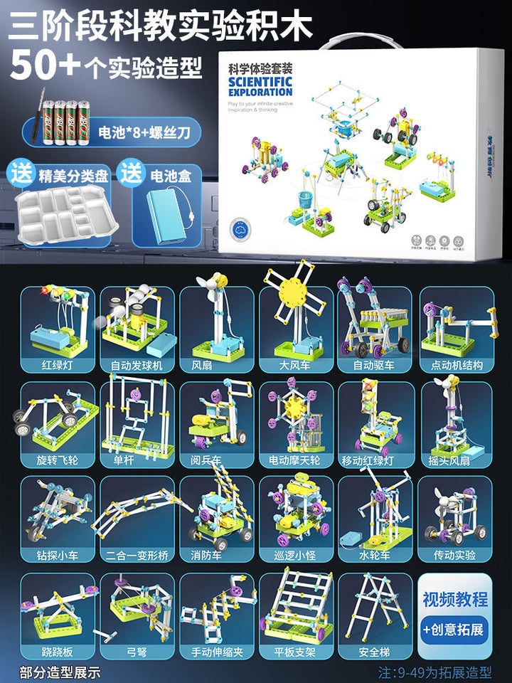 Phase 1 electric technology experimental building block [40 + shape] gift box + battery, Two-stage electric technology experimental building block [50 + shape] gift box + battery, Three-stage electric technology experimental building block [50 + shape] gift box + battery, Four-stage electric technology experimental building block [60 + shape] gift box + battery, Five-stage electric technology experimental building block [60 + shape] gift box + battery, Six-stage electric technology experimental building block [70 + shape] gift box + battery, Phase 1 electric technology experimental building block [40 + modeling] gift box + battery + upgrade package, Phase 2 electric technology experimental building block [50 + modeling] gift box + battery + upgrade package, Three-stage electric technology experimental building block [60 + shape] gift box + battery + upgrade package, Four-stage electric technology experimental building block [80 + shape] gift box + battery + upgrade package, Five-stage electric technology experimental building block [90 + modeling] gift box + battery + upgrade package, Six-stage electric technology experimental building block [100 + modeling] gift box + battery + upgrade package |