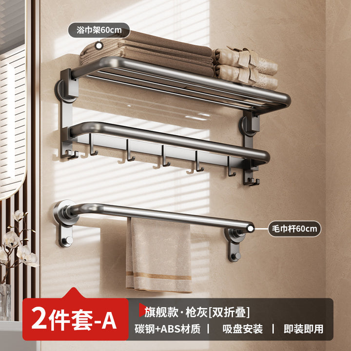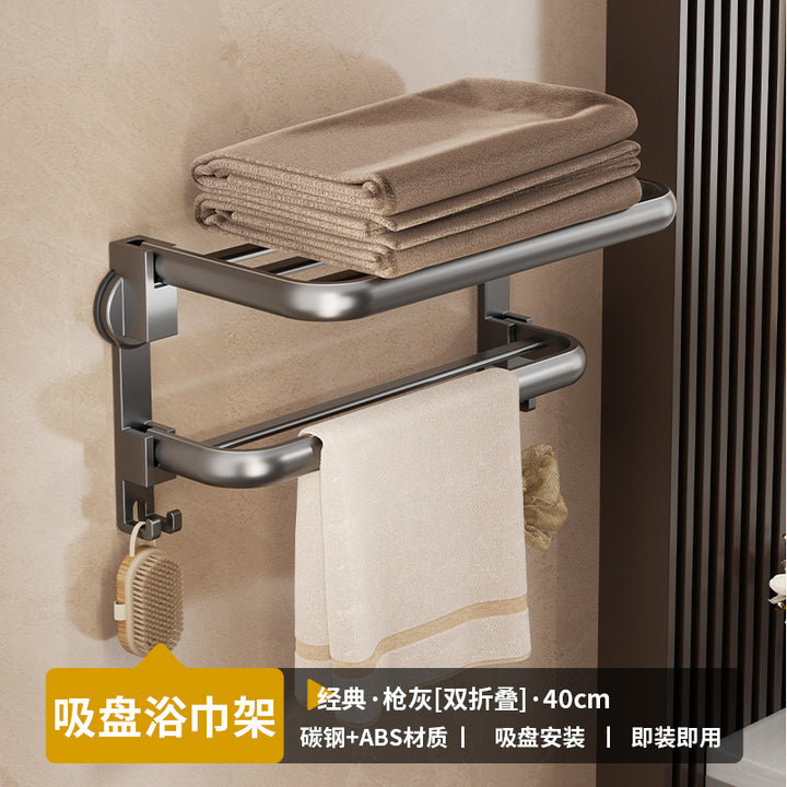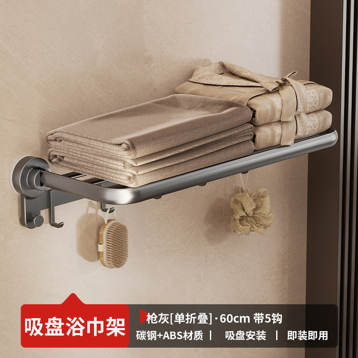 Suction cup folding bath towel rack non-punching toilet rack wall-mounted toilet pendant set ...