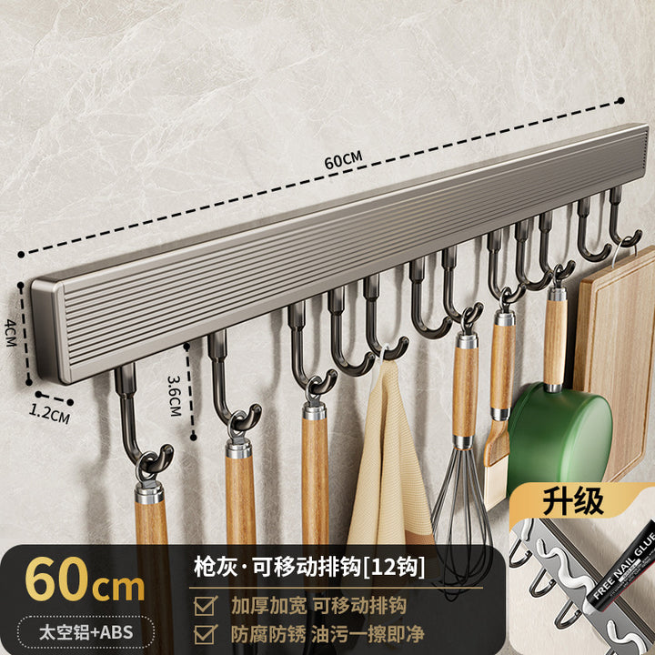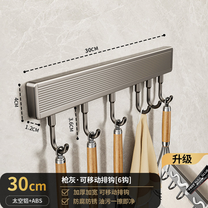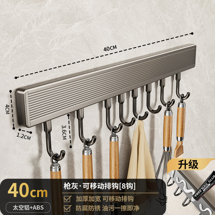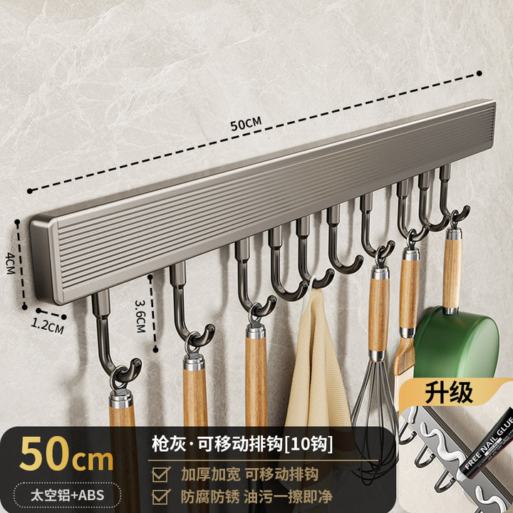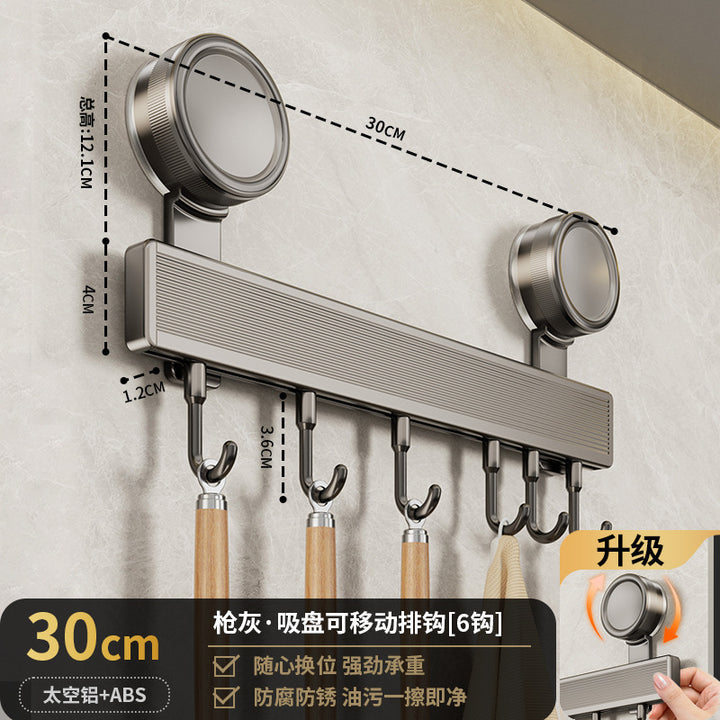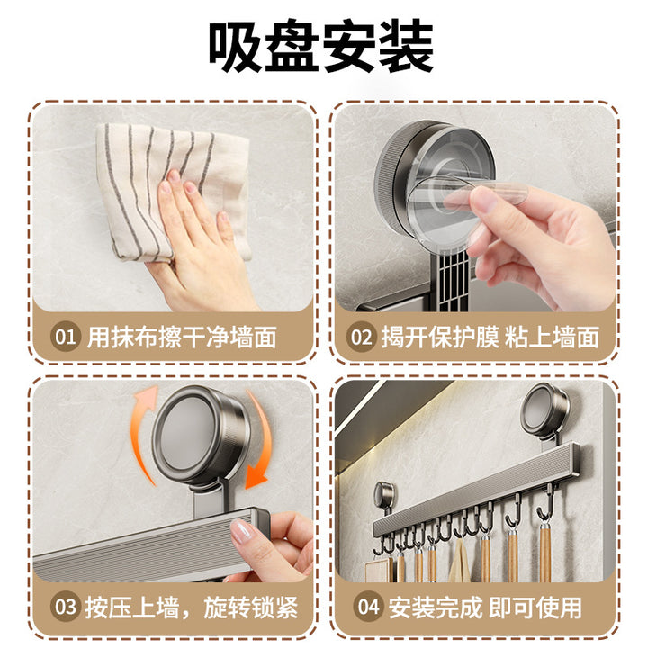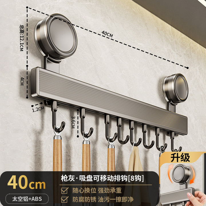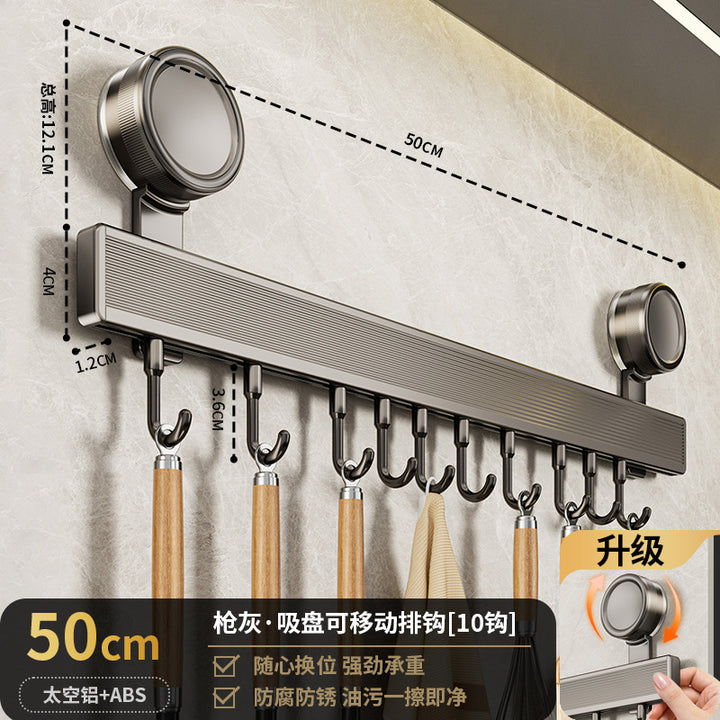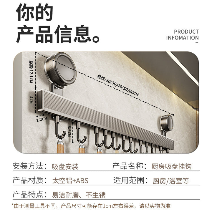 Suction cup hook, kitchen non-punching rack, spatula, spoon, row of hanging rods, wall-mounte...