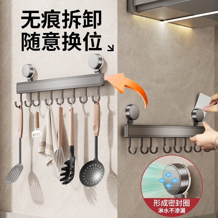 Suction cup, kitchen hook, hanging rod, no punching, kitchen shelf, spatula, spoon, integrate...