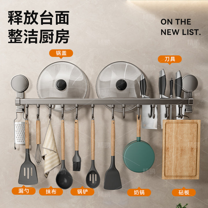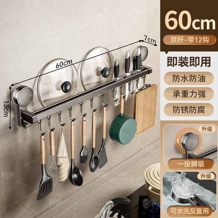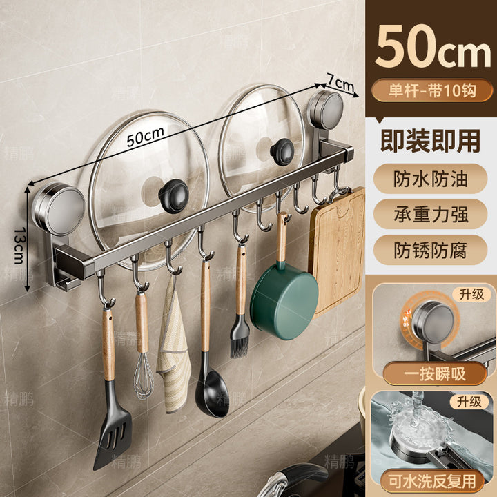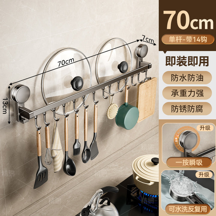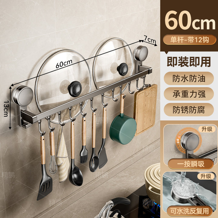 Suction cup kitchen hook hanging rod non-punching wall-mounted tool holder storage rack spatu...