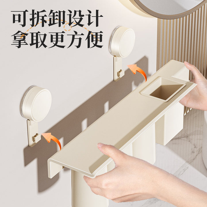 Cream White - Four Cup Magnetic Toothbrush Holder [Suction Cup Type], Gun ash - four cups magnetic toothbrush holder [suction cup type] |