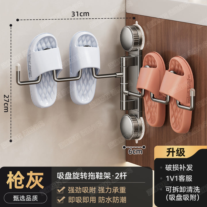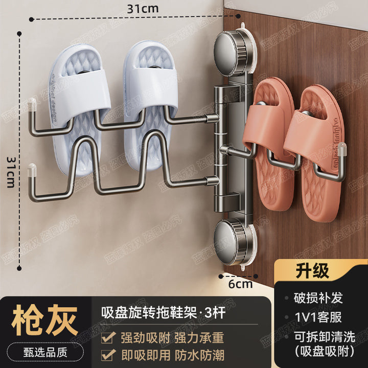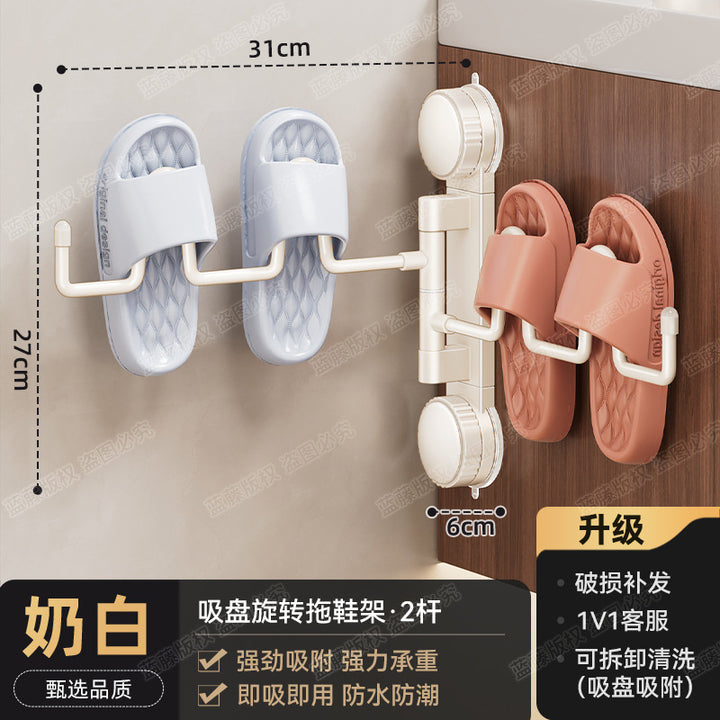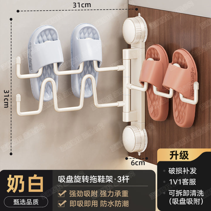 Suction cup slippers hanger bathroom non-punching rotating shoe drying rack wall-mounted fold...