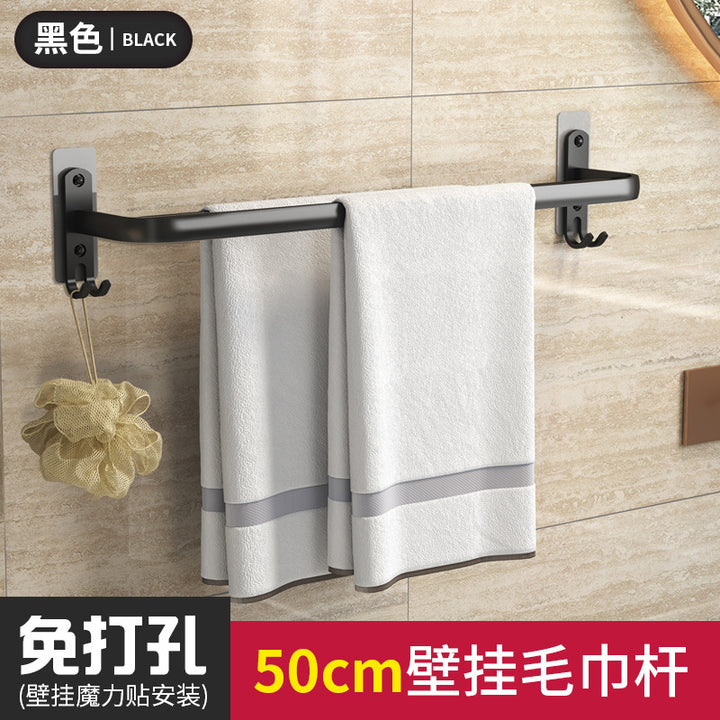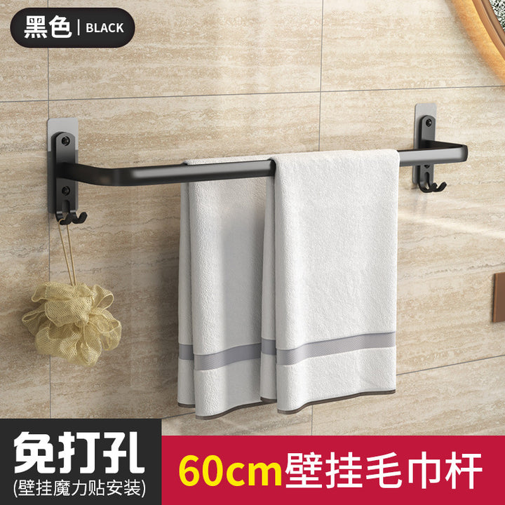 Suction cup towel rack No punching, bathroom seamless self-adhesive space aluminum black bath...