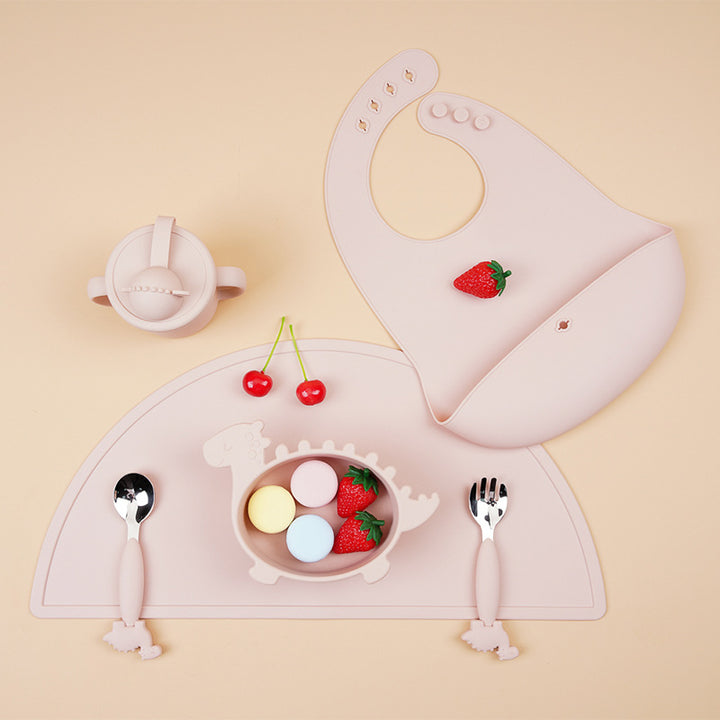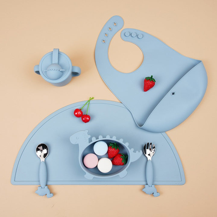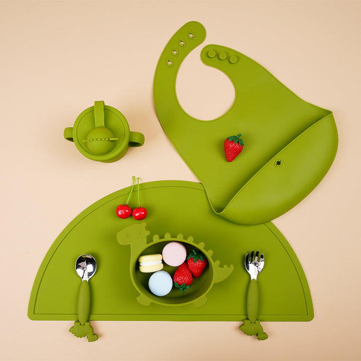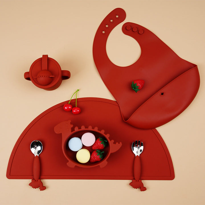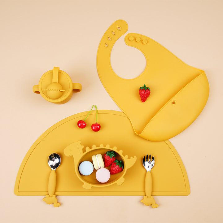 Soot Blue [Tyrannosaurus Rex] Silicone Tableware 5-piece set (bowl + fork and spoon + rice pocket + placemat + water cup), Mustard Green [Tyrannosaurus Rex] Silicone Tableware 5-piece set (bowl + fork and spoon + rice pocket + placemat + water cup), Turmeric [Tyrannosaurus rex] silicone tableware 5-piece set (bowl + fork and spoon + rice pocket + placemat + water cup), Smoke powder [Tyrannosaurus rex] silicone tableware 5-piece set (bowl + fork and spoon + rice pocket + placemat + water cup), Brick Red [Tyrannosaurus Rex] Silicone Tableware 5-piece set (bowl + fork and spoon + rice pocket + placemat + water cup) |