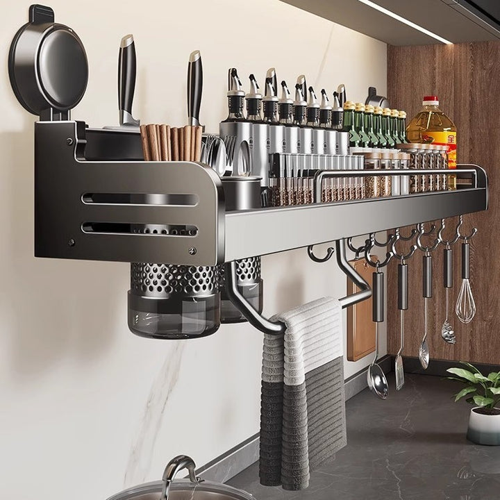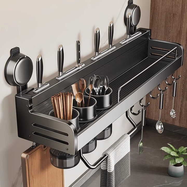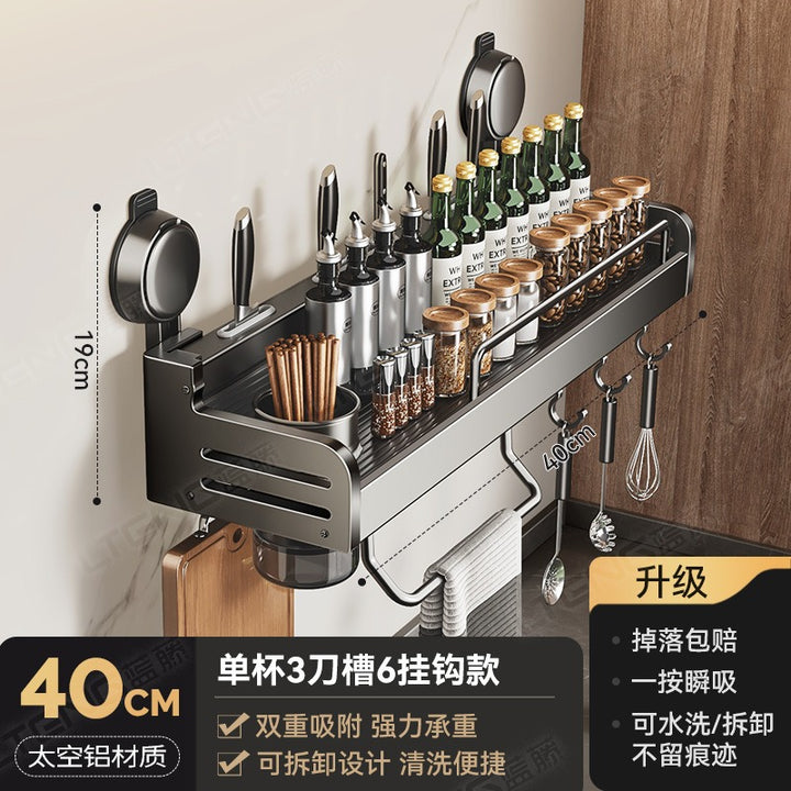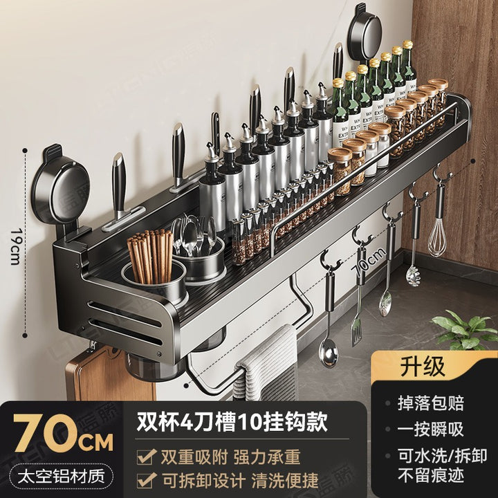 Suction cup type kitchen rack wall-mounted multi-functional chopsticks knife holder pot spatu...