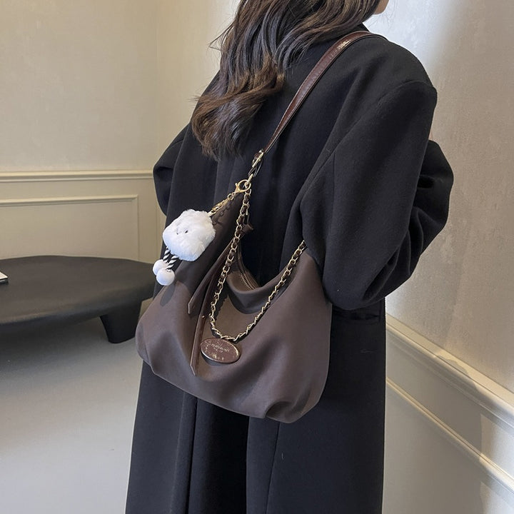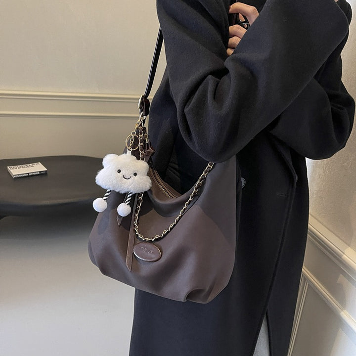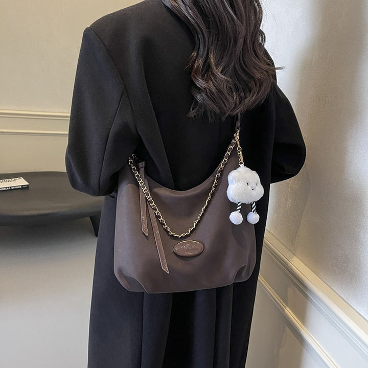 Suede bag women's 2025 new fashion versatile shoulder bag retro senior messenger bag commuter tote bag