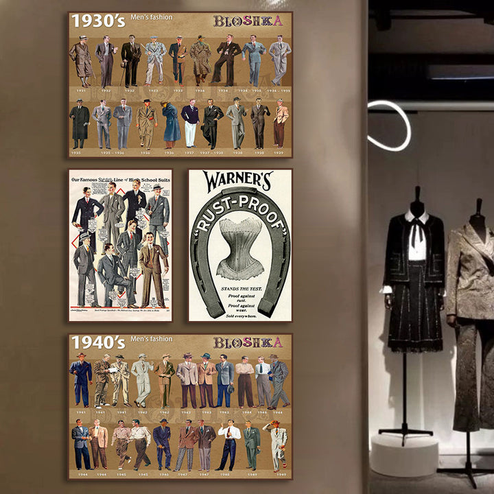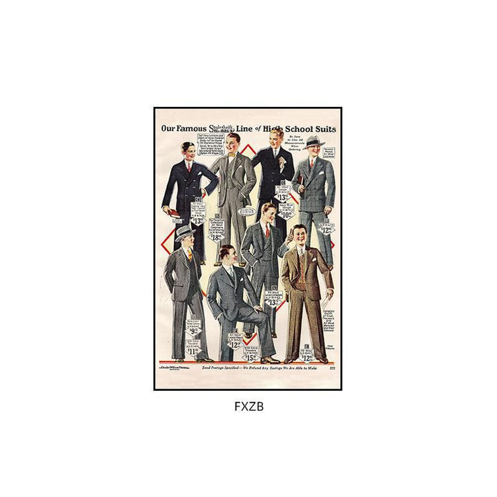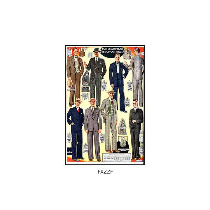 Suit shop painting clothing store studio shoe store showcase decorative painting suit dress retro poster mural