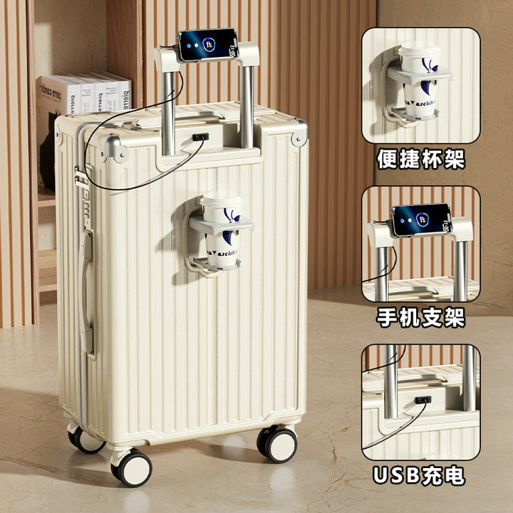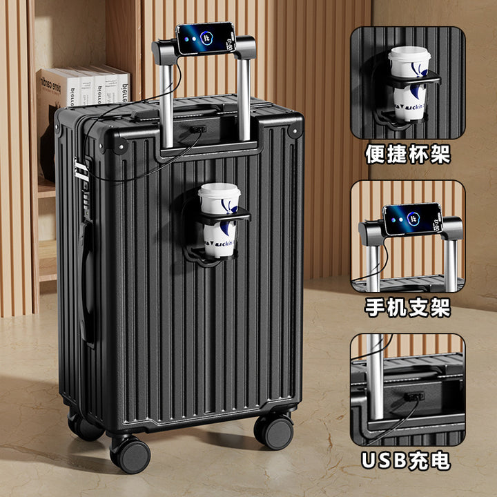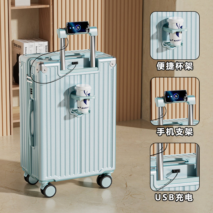 Suitcase trolley case female 2024 new student large capacity advanced sense zipper boarding travel password leather case male