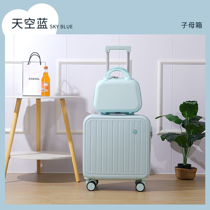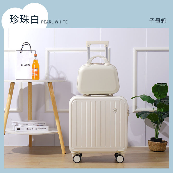 Suitcase Women's 18-inch suitcase Small lightweight luggage Trolley case Boarding case Silent universal wheel leather case