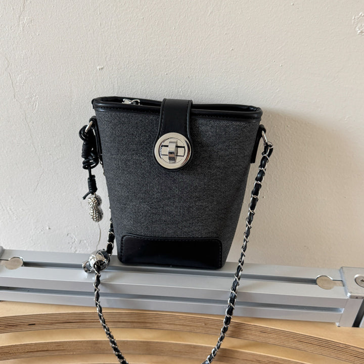 Summer crushed ice blue fashion bucket bag women's 2025 summer new super fire versatile mini chain shoulder messenger bag