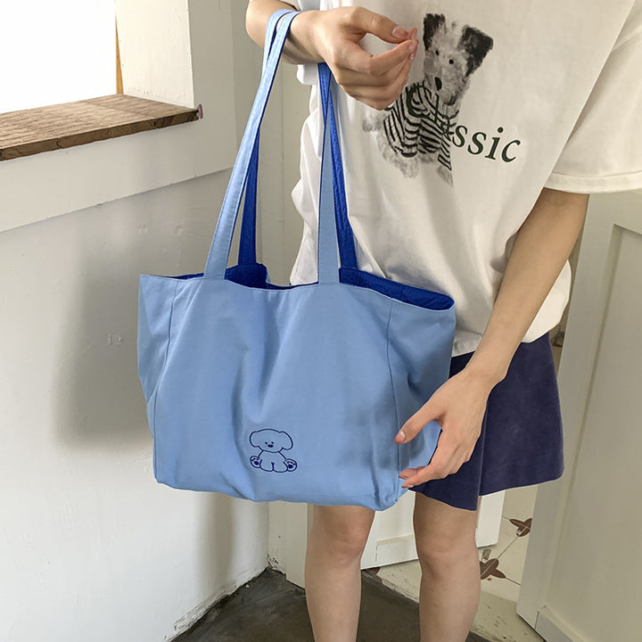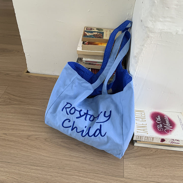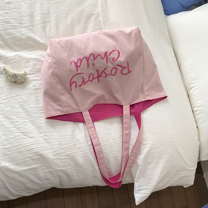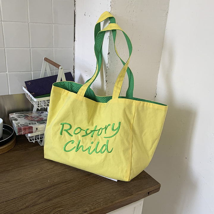 Summer fresh contrasting color double-sided dopamine color canvas bag ins sweet girl shoulder bag multi-color letter shoulder bag