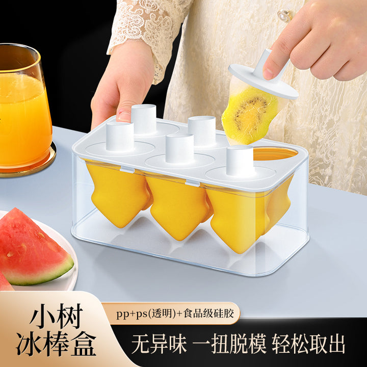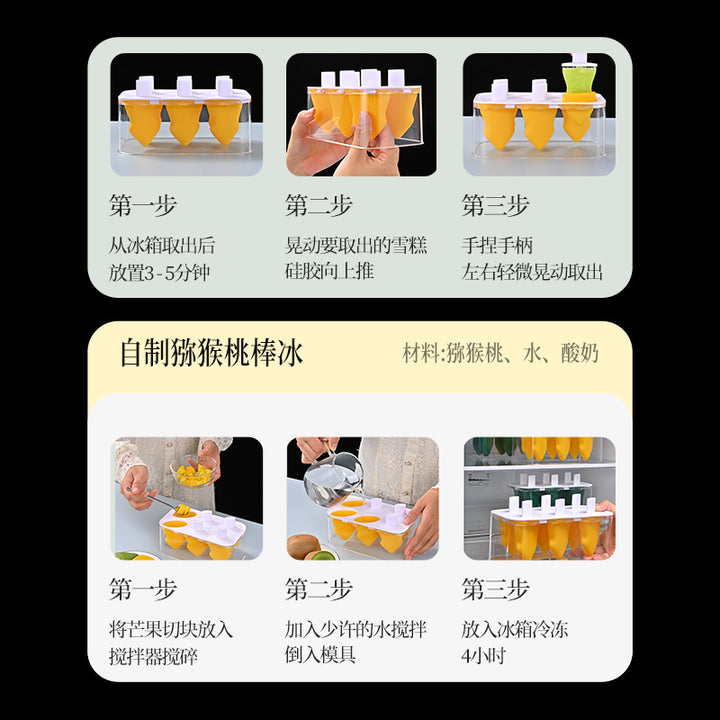 Summer homemade ice cream popsicle box, silicone ice grid ice cube mold cartoon silicone popsicle box refrigerator ice box