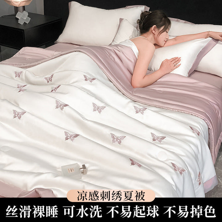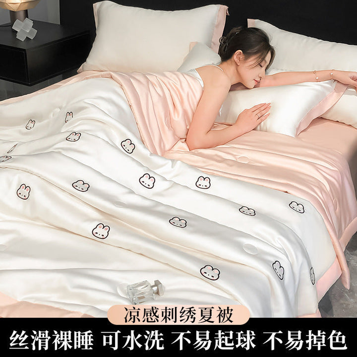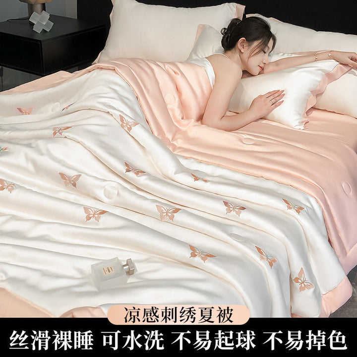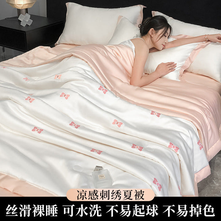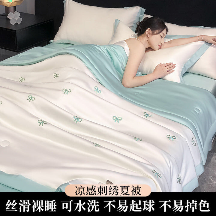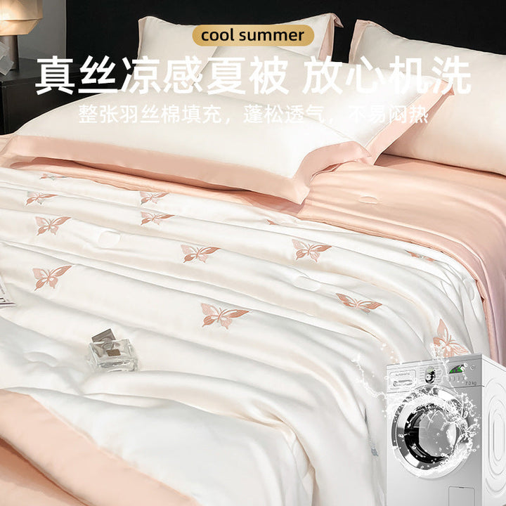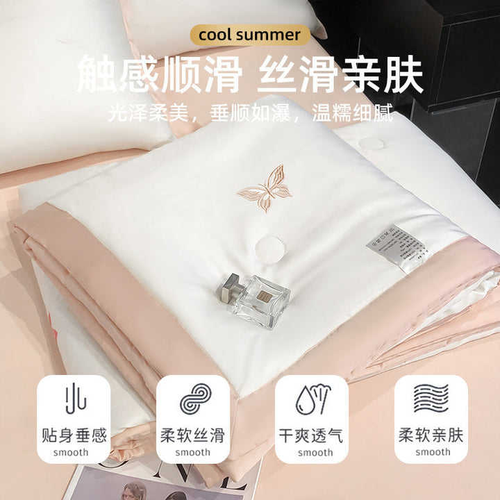Summer machine washable air conditioner quilt Xia Liang quilt four-piece ice silk summer quilt single double silk summer thin quilt