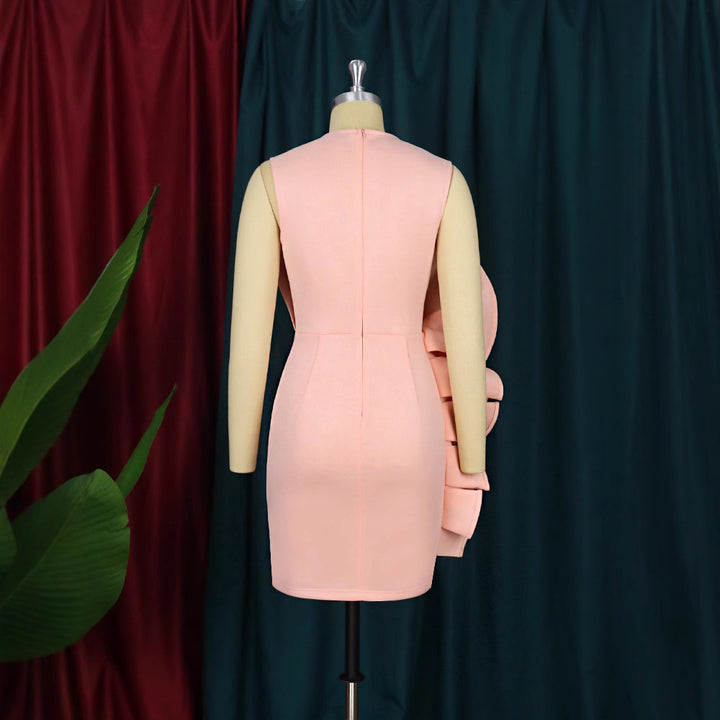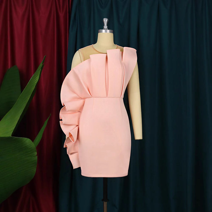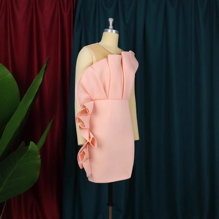 Summer new mesh perspective splicing ruffle edge mini dress dress party dress women's party d...