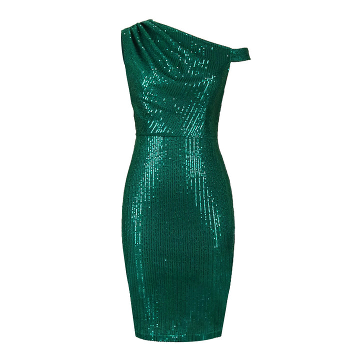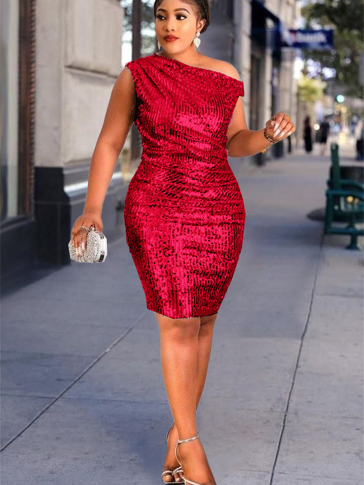 Summer new plus size sexy shoulder sleeveless sequin dress banquet evening dress female sequin dress