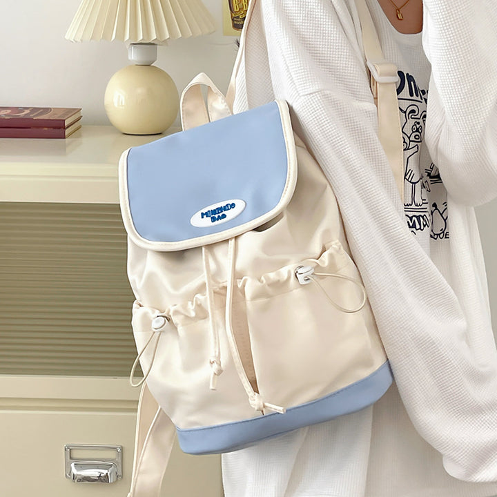 Summer new splicing contrasting color backpack 2025 bag cover design Mori niche leisure backpack going out travel bag