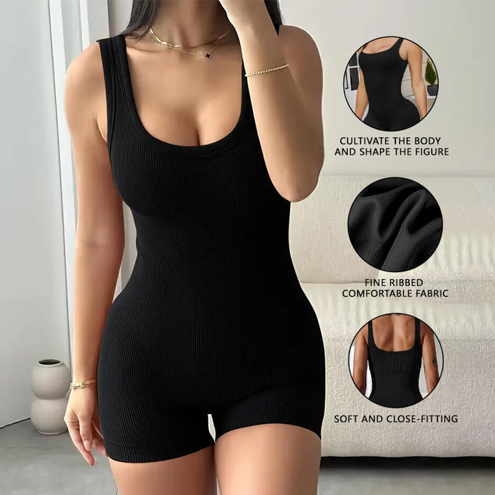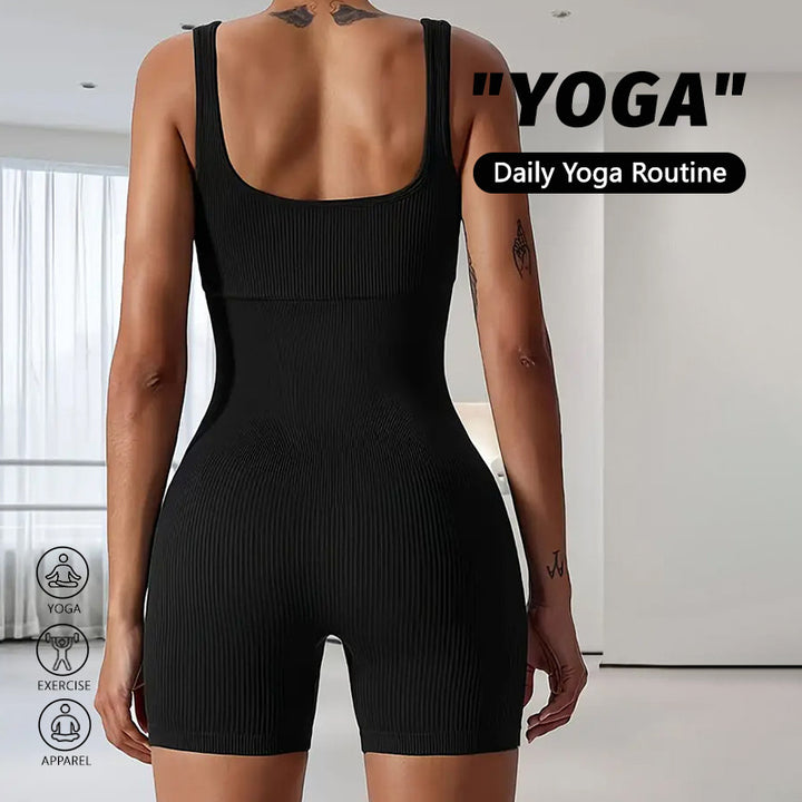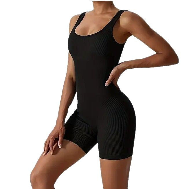 Summer shoulder strap tight one-piece yoga suit gym suit threaded one-piece shorts dance sports yoga onesie