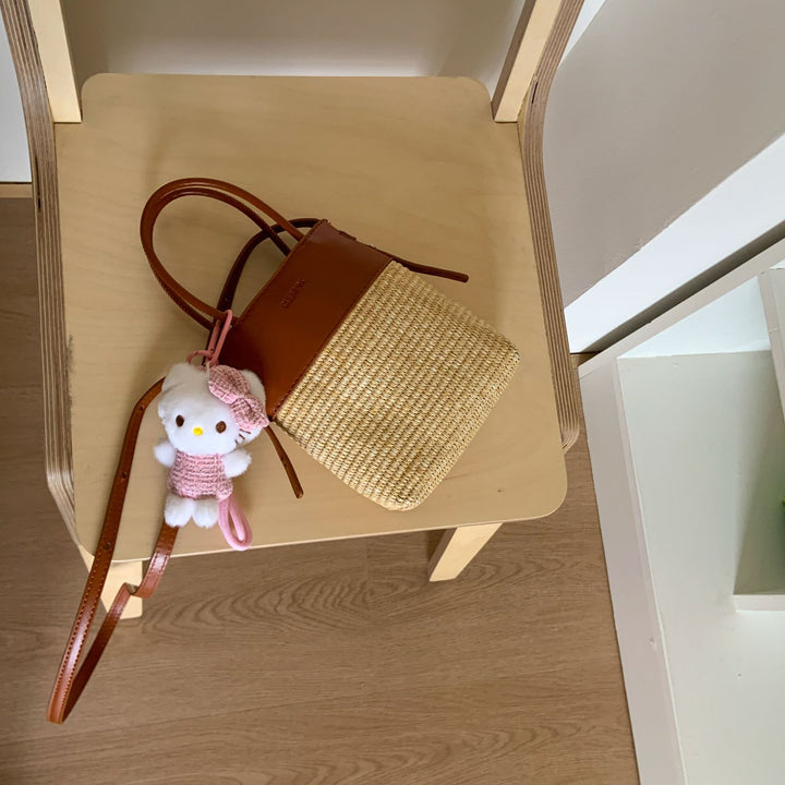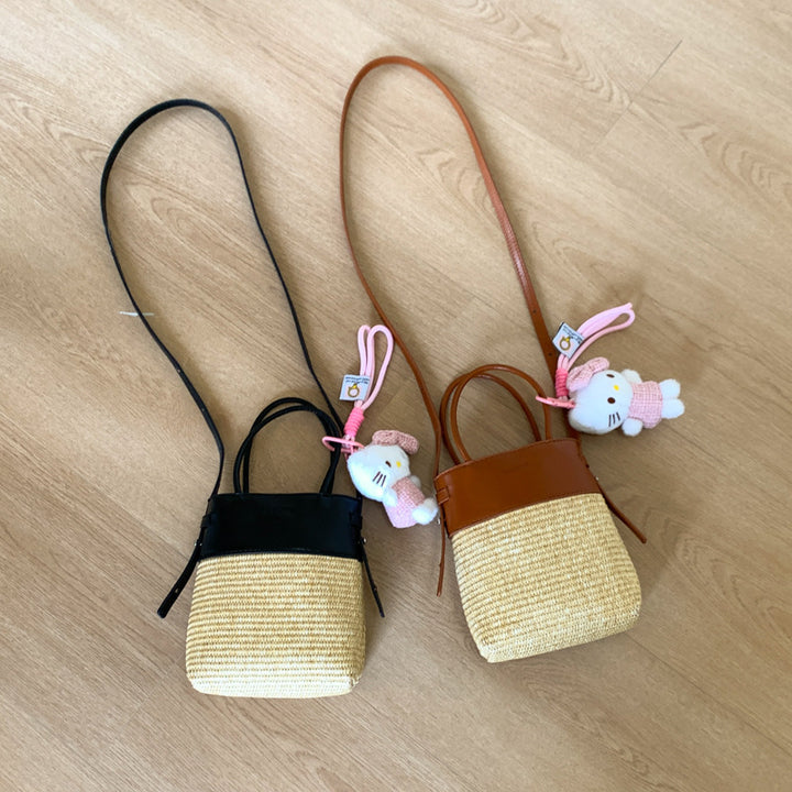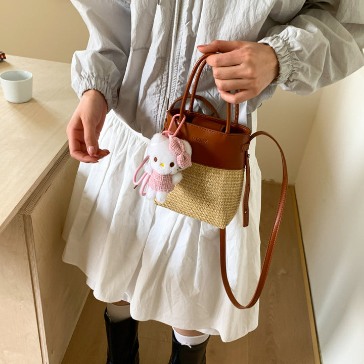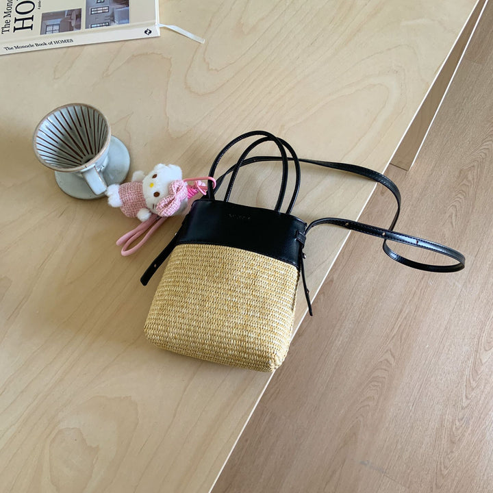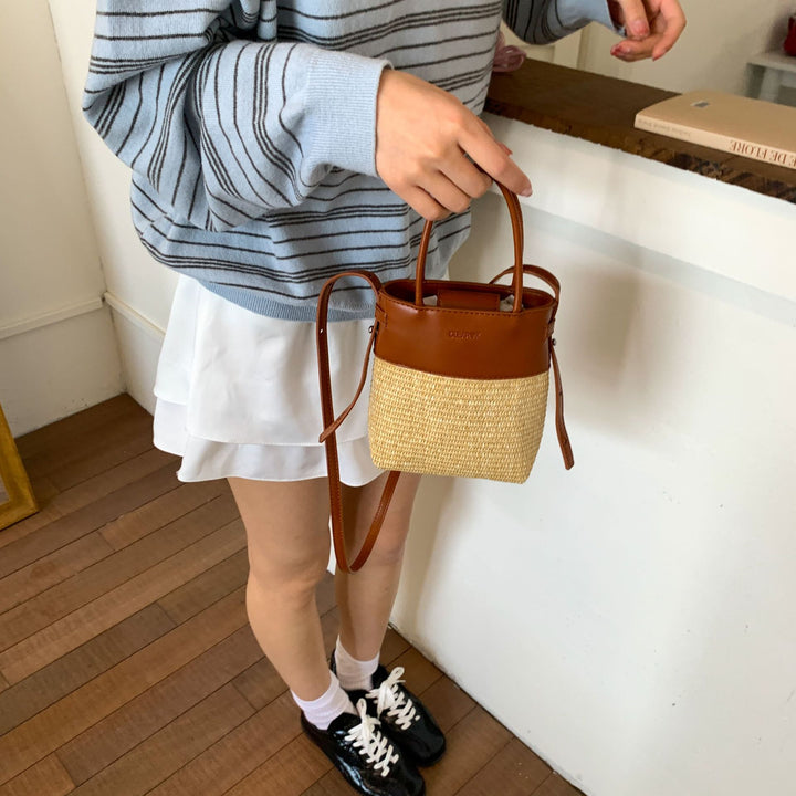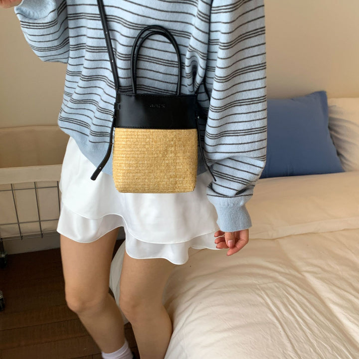 Summer straw beach bag 2025 new splicing handbag niche design retro contrasting color bucket bag messenger bag