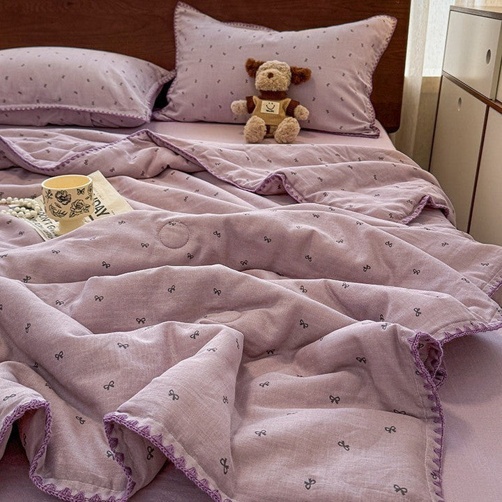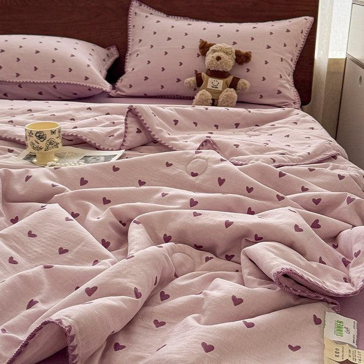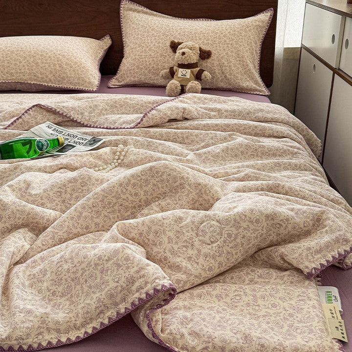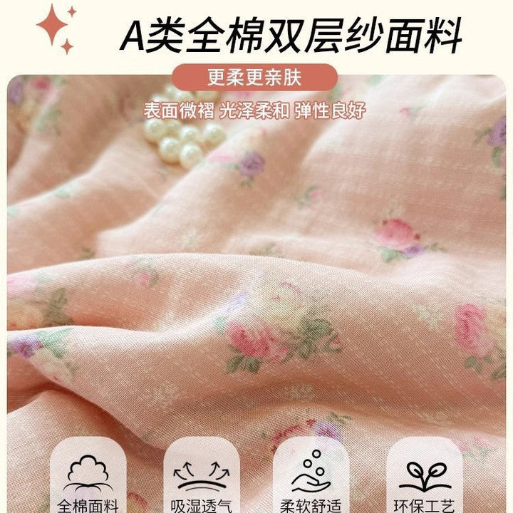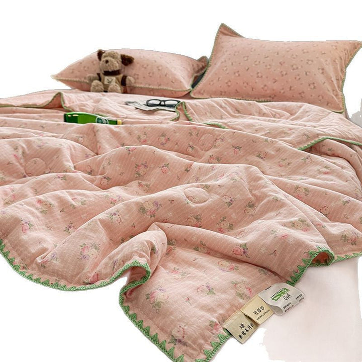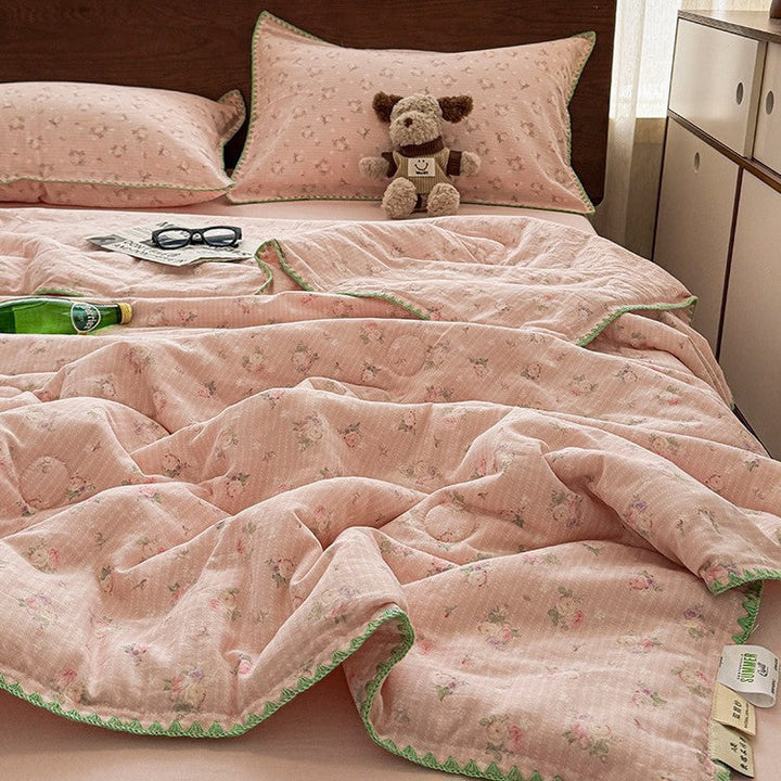 Summer summer cool quilt pure cotton small floral pastoral summer quilt four-piece set single...