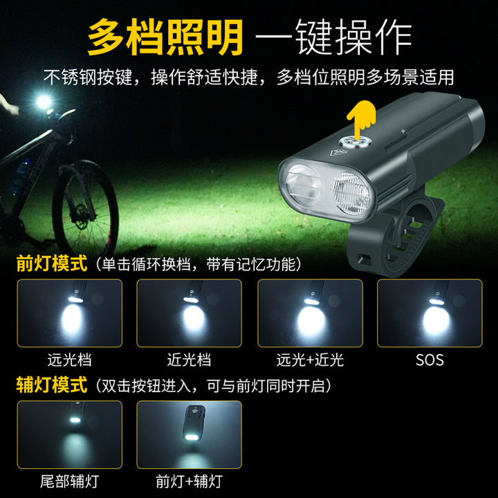 Super bright dual-mode outdoor strong light bicycle light far and near light long-lasting battery life mountain road commuter night riding equipment