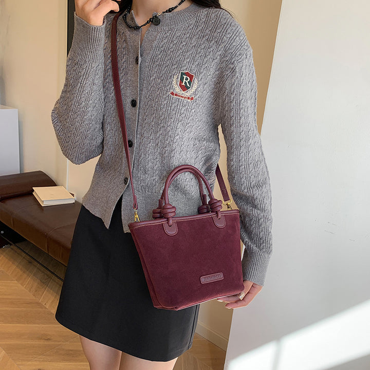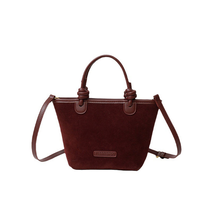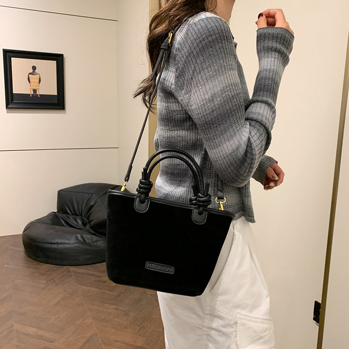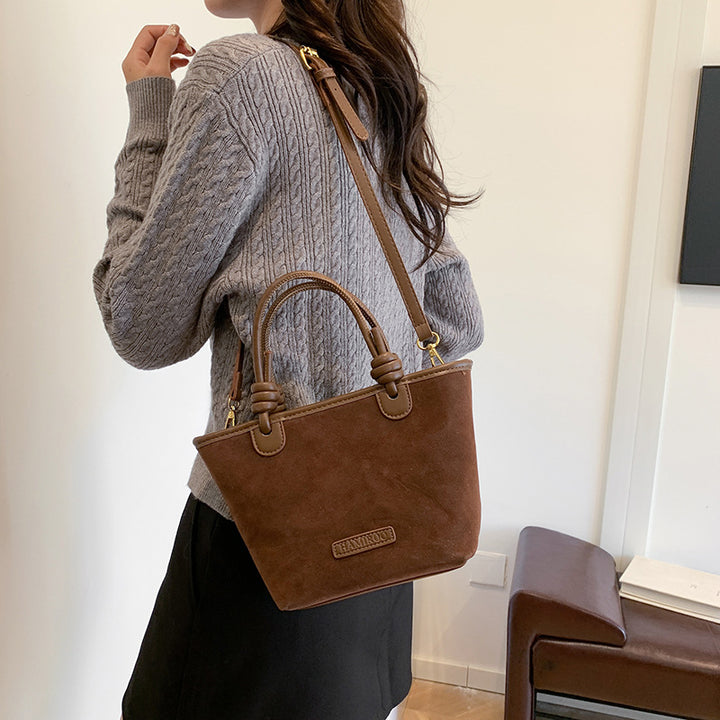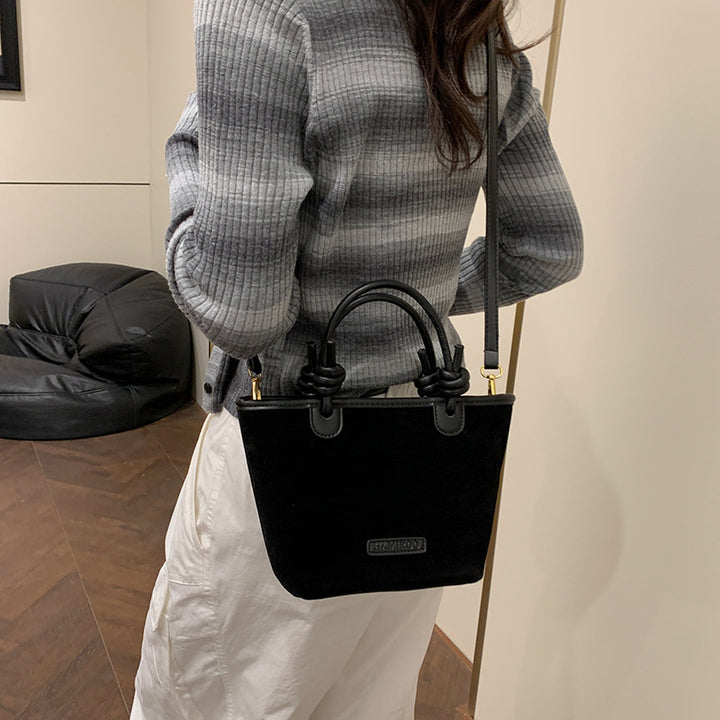 Super fire niche leather velvet bag women's 2025 new autumn and winter retro versatile messenger bag portable bucket bag