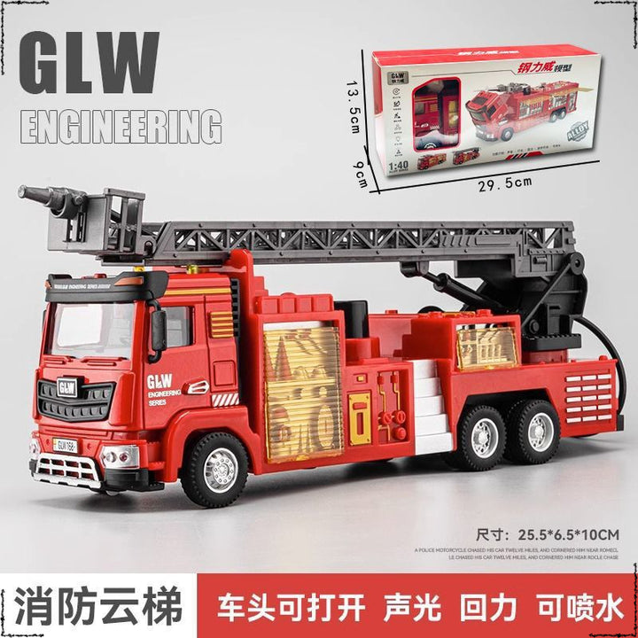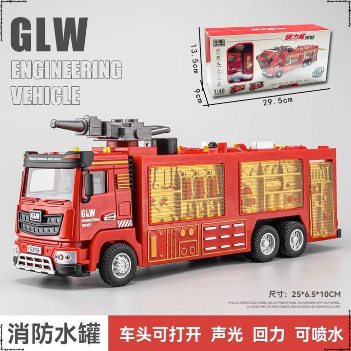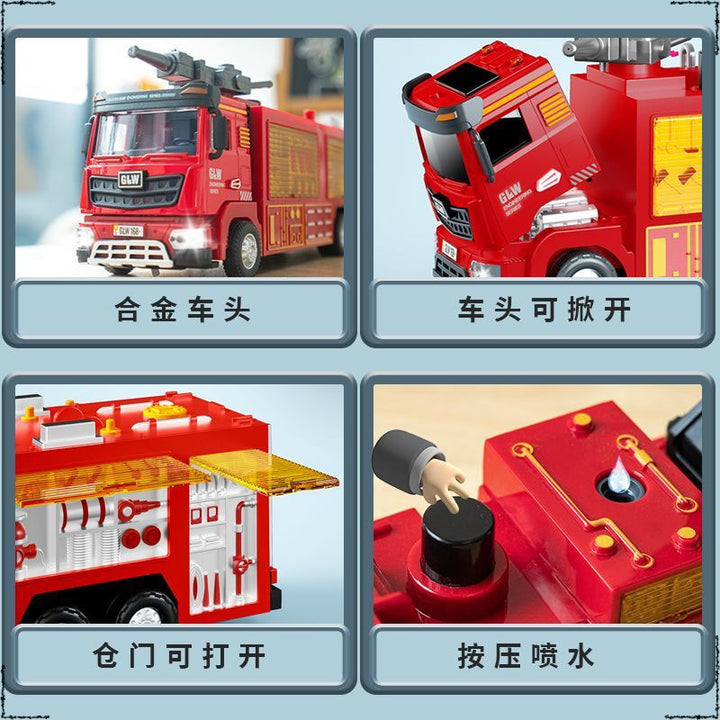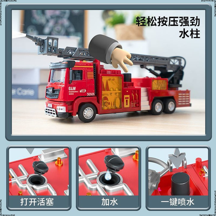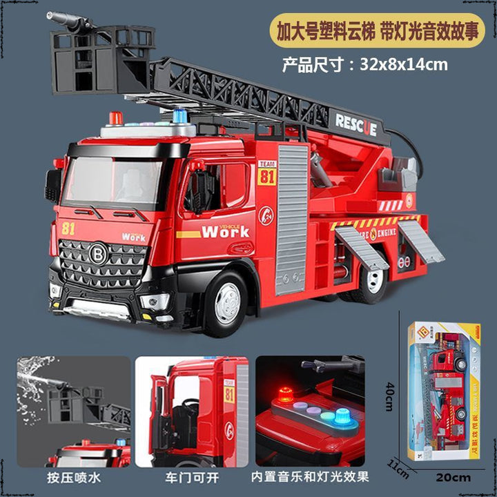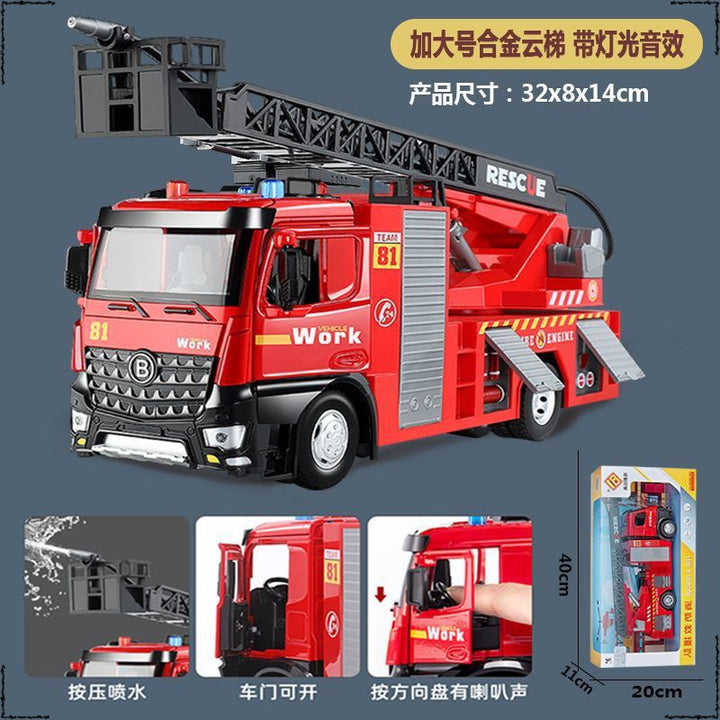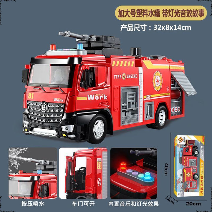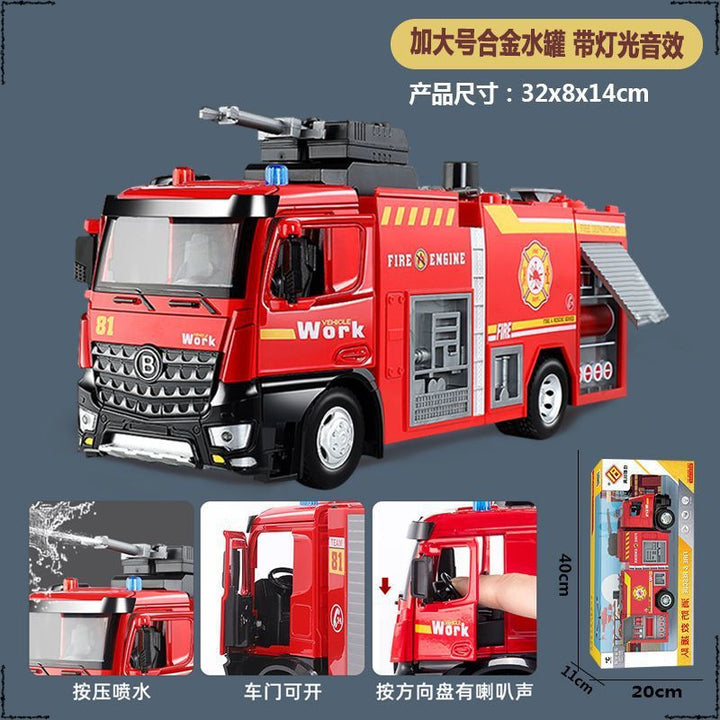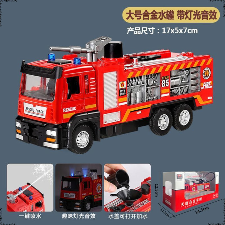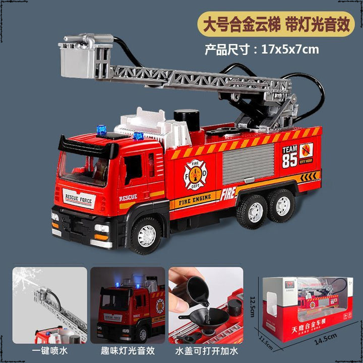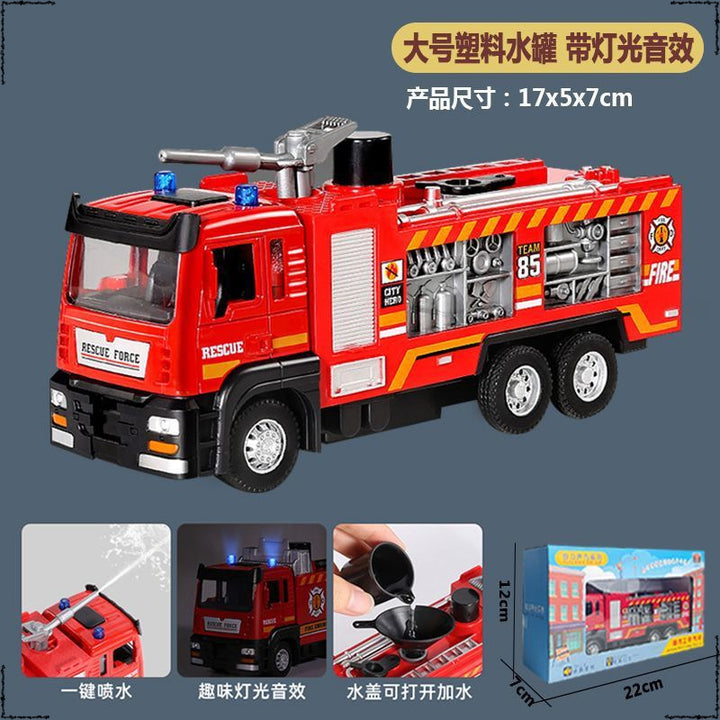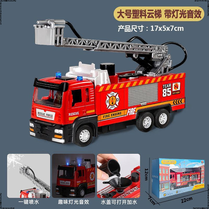 Water sprayable - plastic medium water can/sound and light, Water sprayable - plastic medium ladder/sound and light, Water sprayable - alloy medium water tank/sound and light, Water sprayable - alloy medium ladder/sound and light, Water spray - alloy large water can/sound and light/front movable, Water spray - alloy large ladder/sound and light/front movable, Water can be sprayed - plastic extra-large water can/sound and light story/car door can be opened, Water can be sprayed - plastic plus size ladder/sound and light story/car door can be opened, Water spray - alloy plus water can/sound and light horn/door can be opened, Water spray - alloy plus size ladder/sound and light horn/door can be opened, No water spray - alloy small water tank, No water spray - alloy small ladder |